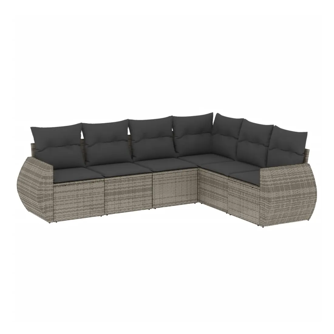 Salon de jardin 6 pcs avec coussins gris résine tressée