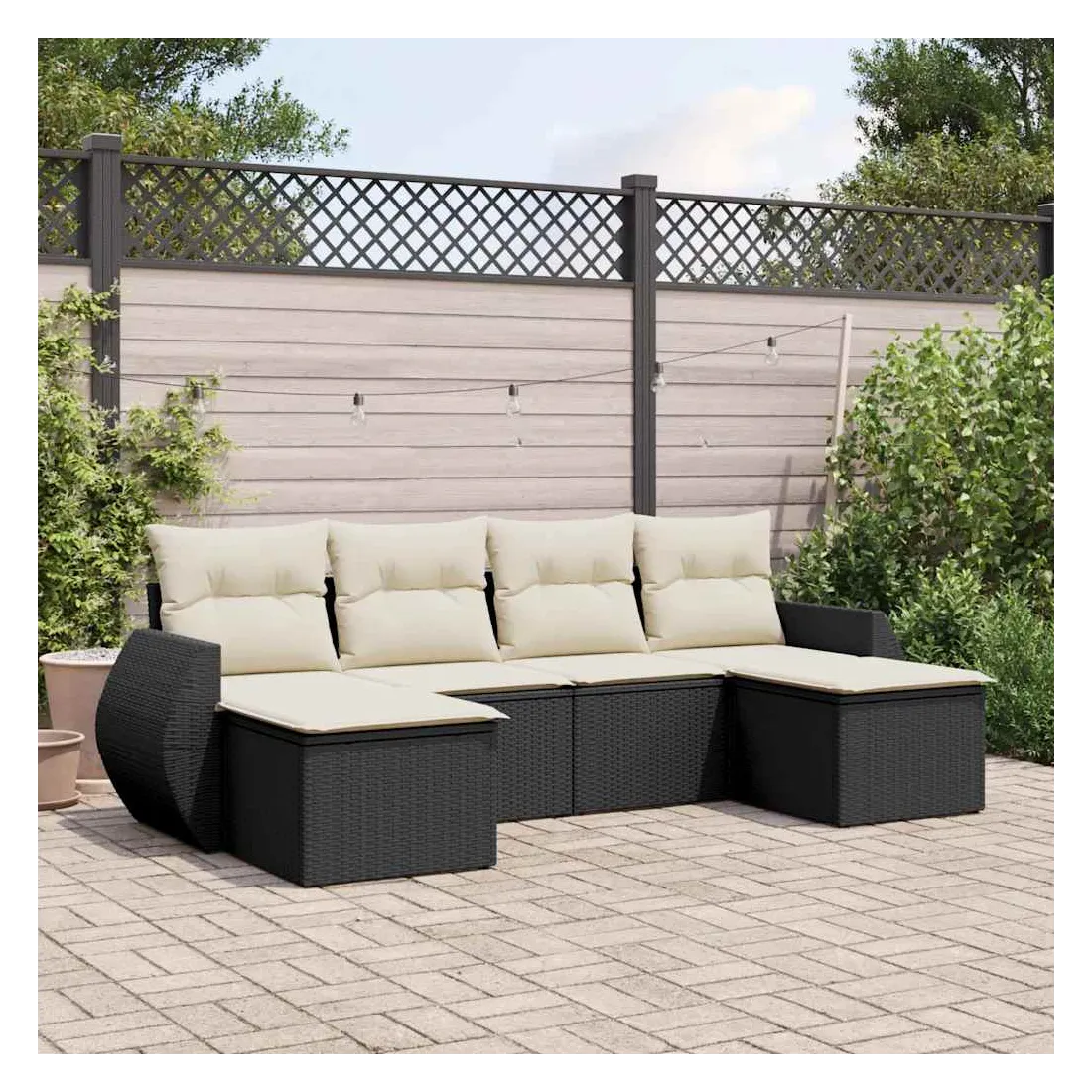 Cet ensemble de canapés de jardin est le complément parfait de votre arrière-cour, terrasse ou patio, offrant un espace confortable et accueillant pour discuter avec la famille et les amis ou simplement se détendre et profiter de l'extérieur. Matériau durable : la résine tressée, également connue sous le nom de poly rotin, est un matériau synthétique solide et nécessitant peu d'entretien qui ressemble au rotin naturel. Il est léger, facile à nettoyer et couramment utilisé pour les meubles d'extérieur en raison de sa durabilité et de ses propriétés de résistance aux intempéries.Fonction de rangement avec sac résistant à l'eau : chaque siège de jardin dispose d'un espace de rangement sous l'assise, complété par un sac résistant à l'eau pour ranger les coussins, les jouets et d'autres objets. Les sacs intérieurs sont dotés d'un couvercle et peuvent être solidement fixés aux sièges à l'aide de bandes auto-agrippantes pour plus de stabilité.Housse amovible et lavable : ces coussins de siège sont dotés de housses amovibles pour un lavage et un entretien faciles.Conception modulaire : cet ensemble de meubles d'extérieur a une conception modulaire, ce qui le rend complètement flexible et facile à déplacer, afin que vous puissiez créer un agencement de meubles d'extérieur personnalisé. Bon à savoir :Pour que vos meubles d'extérieur restent beaux, nous vous recommandons de les protéger avec une housse imperméable.