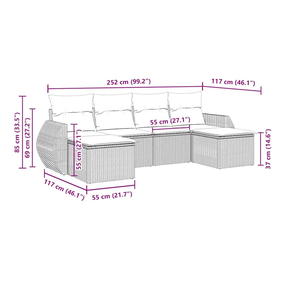 - Dimensions du coussin de dossier : 55 x 45 x 13 cm (L x l x é)