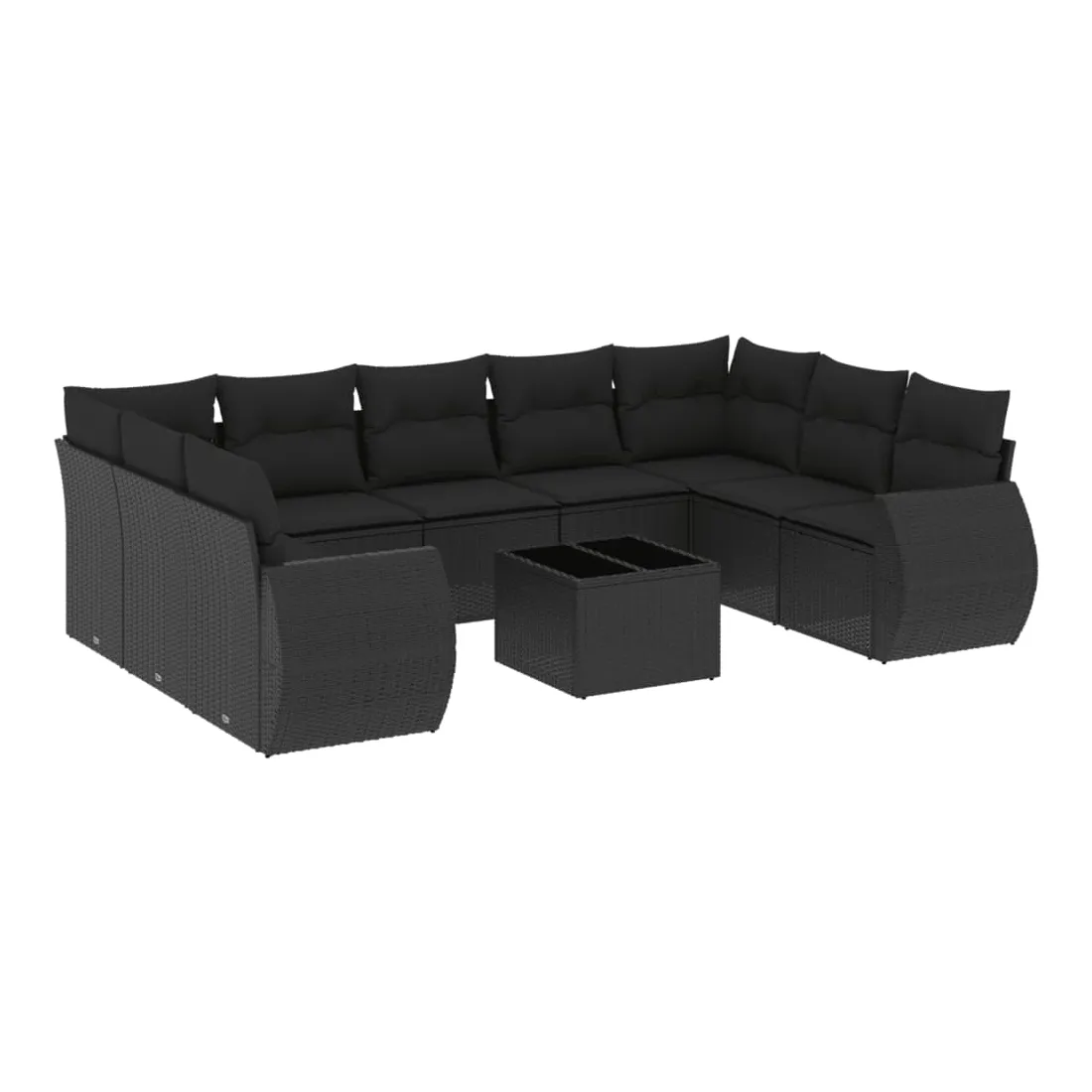 Salon de jardin 10 pcs avec coussins noir résine tressée