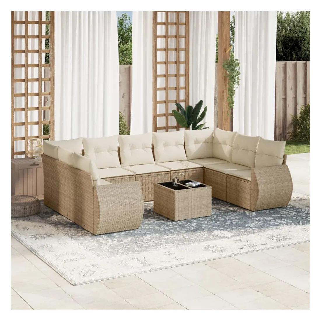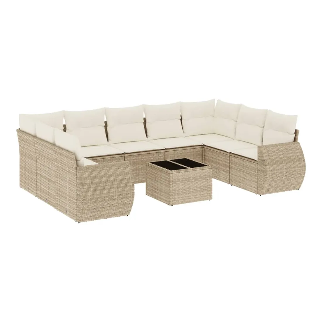 Salon de jardin avec coussins 10 pcs beige résine tressée