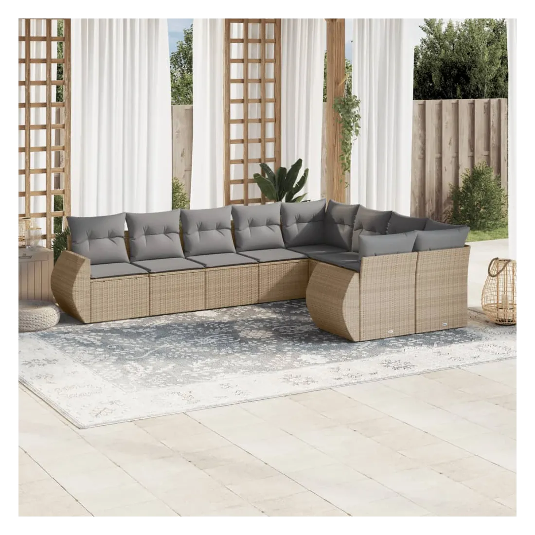 Cet ensemble de canapés de jardin est le complément parfait de votre arrière-cour, terrasse ou patio, offrant un espace confortable et accueillant pour discuter avec la famille et les amis ou simplement se détendre et profiter de l'extérieur. Matériau durable : la résine tressée, également connue sous le nom de poly rotin, est un matériau synthétique solide et nécessitant peu d'entretien qui ressemble au rotin naturel. Il est léger, facile à nettoyer et couramment utilisé pour les meubles d'extérieur en raison de sa durabilité et de ses propriétés de résistance aux intempéries.Fonction de rangement avec sac résistant à l'eau : chaque siège de jardin dispose d'un espace de rangement sous l'assise, complété par un sac résistant à l'eau pour ranger les coussins, les jouets et d'autres objets. Les sacs intérieurs sont dotés d'un couvercle et peuvent être solidement fixés aux sièges à l'aide de bandes auto-agrippantes pour plus de stabilité.Housse amovible et lavable : ces coussins de siège sont dotés de housses amovibles pour un lavage et un entretien faciles.Conception modulaire : cet ensemble de meubles d'extérieur a une conception modulaire, ce qui le rend complètement flexible et facile à déplacer, afin que vous puissiez créer un agencement de meubles d'extérieur personnalisé. Bon à savoir :Pour que vos meubles d'extérieur restent beaux, nous vous recommandons de les protéger avec une housse imperméable.