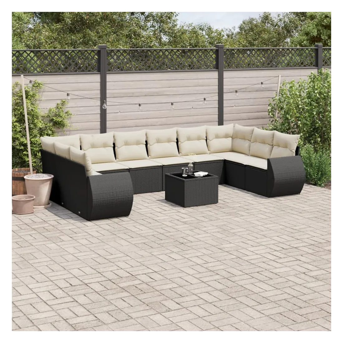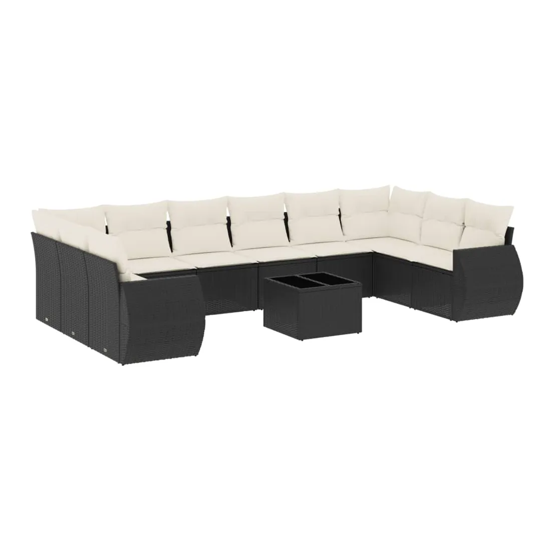 Salon de jardin 11 pcs avec coussins noir résine tressée