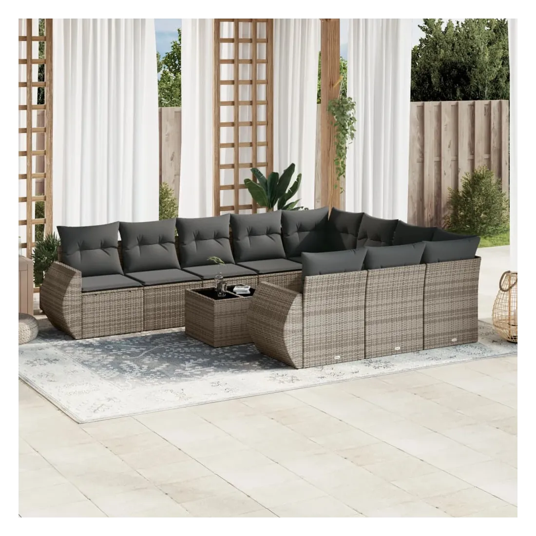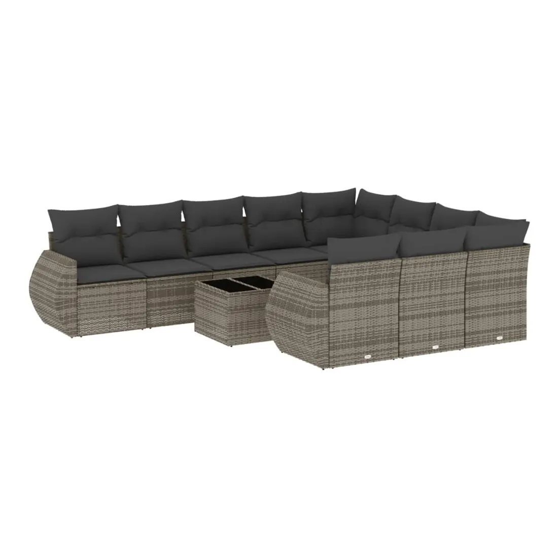 Salon de jardin 11 pcs avec coussins gris résine tressée