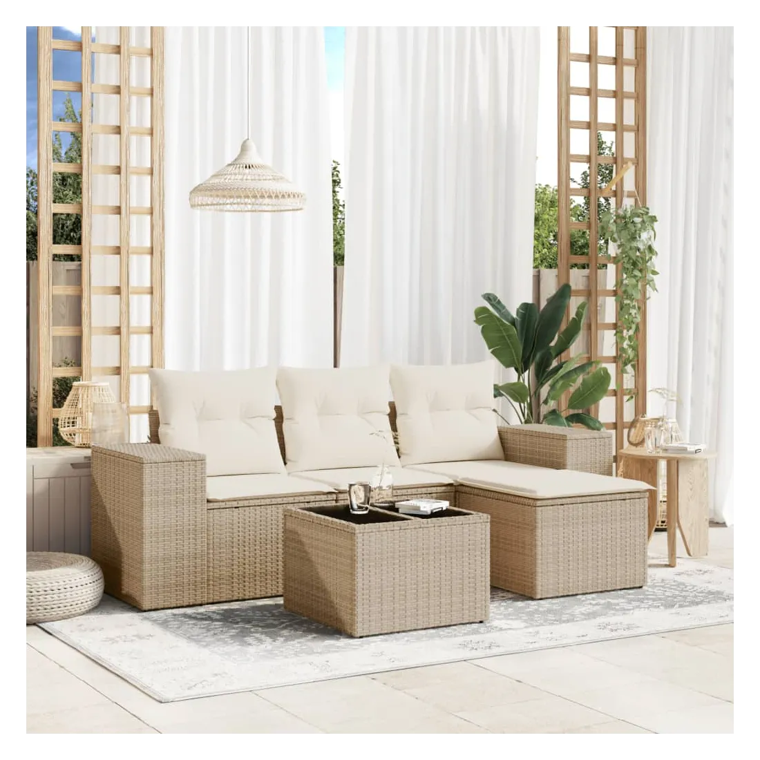 Cet ensemble de canapés de jardin est le complément parfait de votre arrière-cour, terrasse ou patio, offrant un espace confortable et accueillant pour discuter avec la famille et les amis ou simplement se détendre et profiter de l'extérieur. Matériau durable : la résine tressée, également connue sous le nom de poly rotin, est un matériau synthétique solide et nécessitant peu d'entretien qui ressemble au rotin naturel. Il est léger, facile à nettoyer et couramment utilisé pour les meubles d'extérieur en raison de sa durabilité et de ses propriétés de résistance aux intempéries.Fonction de rangement avec sac résistant à l'eau : le mobilier de jardin dispose d'un espace de rangement sous l'assise, complété par un sac résistant à l'eau pour ranger coussins, jouets et autres objets. Le sac intérieur peut être solidement fixé au mobilier d'extérieur grâce à des attaches auto-agrippantes pour plus de stabilité.Dessus en verre : le dessus de la table d'extérieur est fabriqué en verre trempé solide et durable, ce qui le rend facile à nettoyer avec un chiffon humide et ajoute une touche d'élégance à votre espace extérieur.Housse amovible et lavable : ces coussins de siège sont dotés de housses amovibles pour un lavage et un entretien faciles.Conception modulaire : cet ensemble de meubles d'extérieur a une conception modulaire, ce qui le rend complètement flexible et facile à déplacer, afin que vous puissiez créer un agencement de meubles d'extérieur personnalisé. Bon à savoir :Pour que vos meubles d'extérieur restent beaux, nous vous recommandons de les protéger avec une housse imperméable.