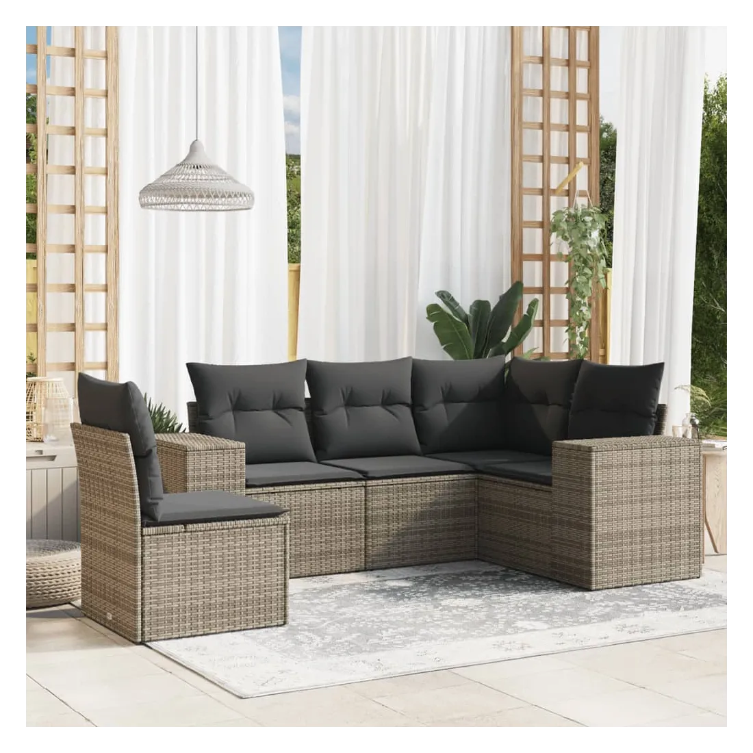 Cet ensemble de canapés de jardin est le complément parfait de votre arrière-cour, terrasse ou patio, offrant un espace confortable et accueillant pour discuter avec la famille et les amis ou simplement se détendre et profiter de l'extérieur. Matériau durable : la résine tressée, également connue sous le nom de poly rotin, est un matériau synthétique solide et nécessitant peu d'entretien qui ressemble au rotin naturel. Il est léger, facile à nettoyer et couramment utilisé pour les meubles d'extérieur en raison de sa durabilité et de ses propriétés de résistance aux intempéries.Fonction de rangement avec sac résistant à l'eau : le mobilier de jardin dispose d'un espace de rangement sous l'assise, complété par un sac résistant à l'eau pour ranger coussins, jouets et autres objets. Le sac intérieur peut être solidement fixé au mobilier d'extérieur grâce à des attaches auto-agrippantes pour plus de stabilité.Housse amovible et lavable : ces coussins de siège sont dotés de housses amovibles pour un lavage et un entretien faciles.Conception modulaire : cet ensemble de meubles d'extérieur a une conception modulaire, ce qui le rend complètement flexible et facile à déplacer, afin que vous puissiez créer un agencement de meubles d'extérieur personnalisé. Bon à savoir :Pour que vos meubles d'extérieur restent beaux, nous vous recommandons de les protéger avec une housse imperméable.