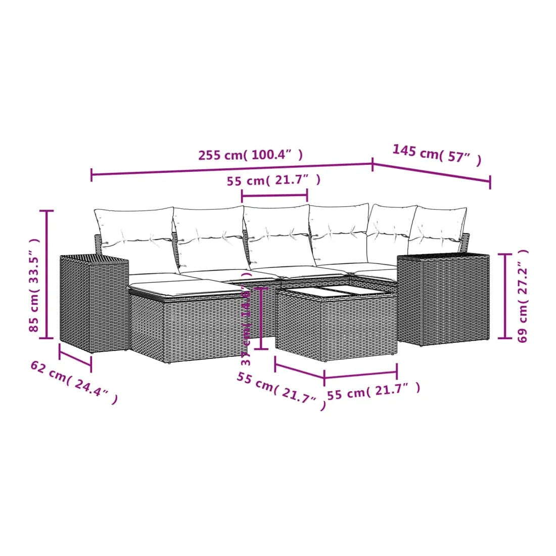 - Dimensions : 55 x 55 x 37 cm (L x l x H)