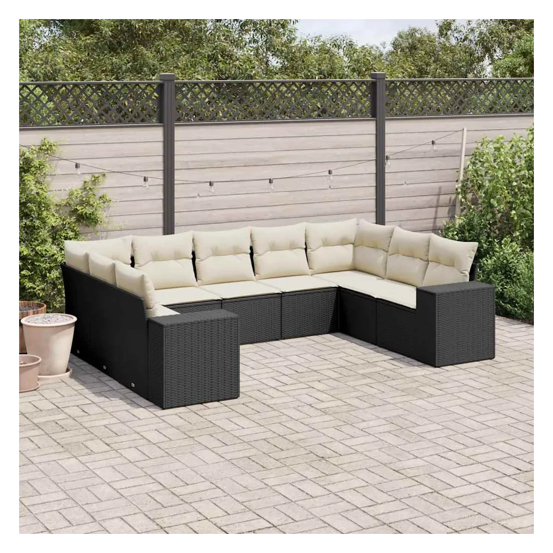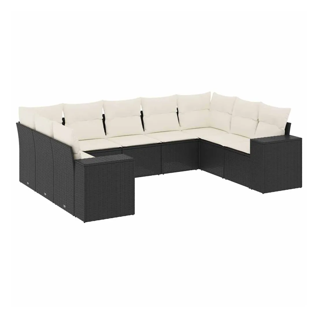 Salon de jardin 9 pcs avec coussins noir résine tressée
