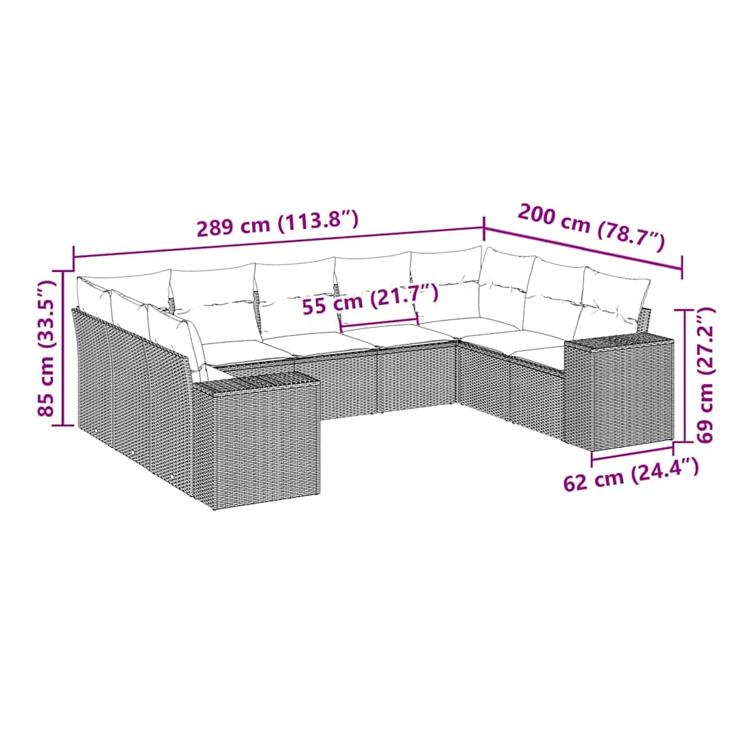 • 9 x coussin d'assise avec housse amovible et lavable