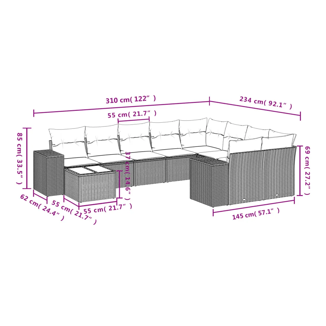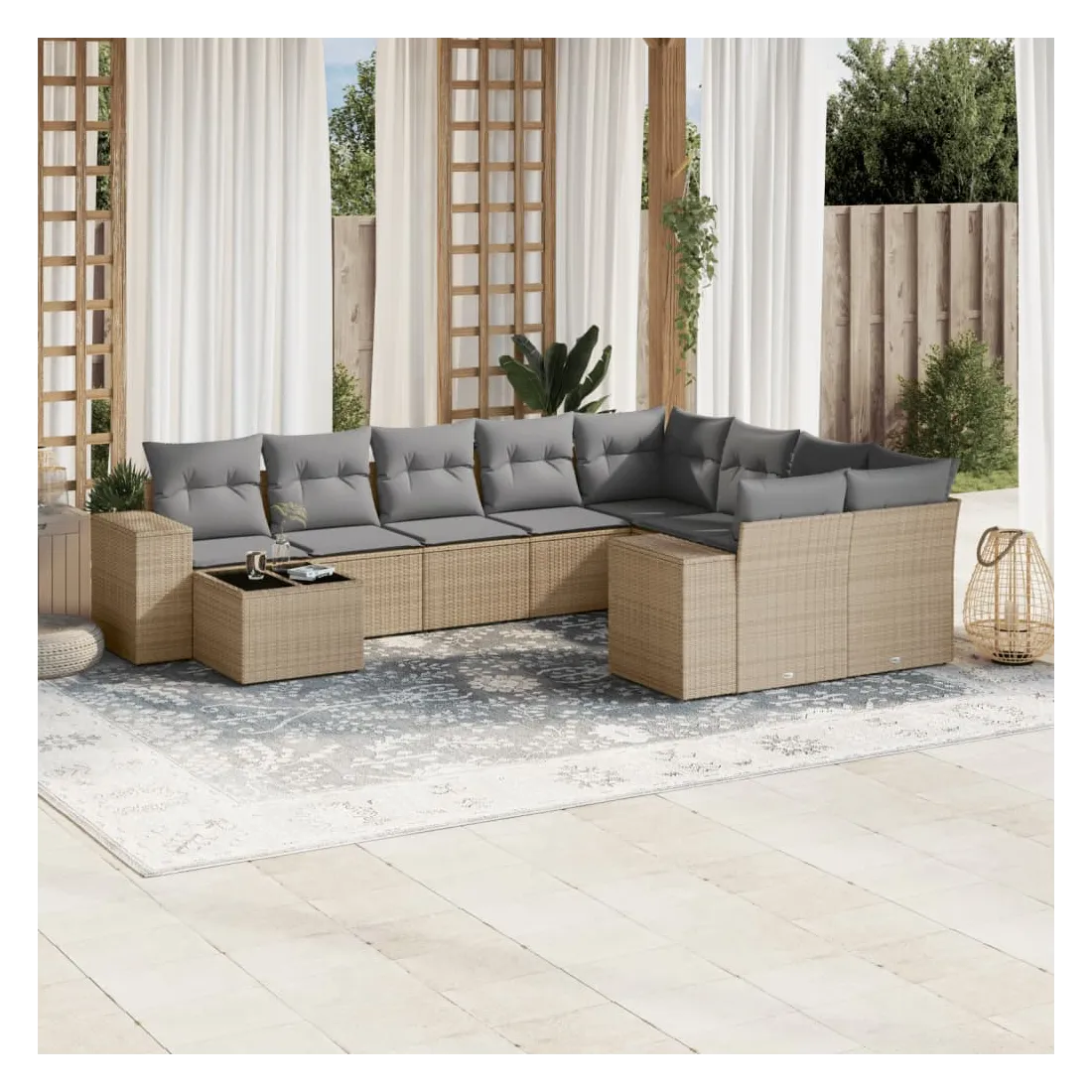 Salon de jardin avec coussins 10 pcs beige résine tressée