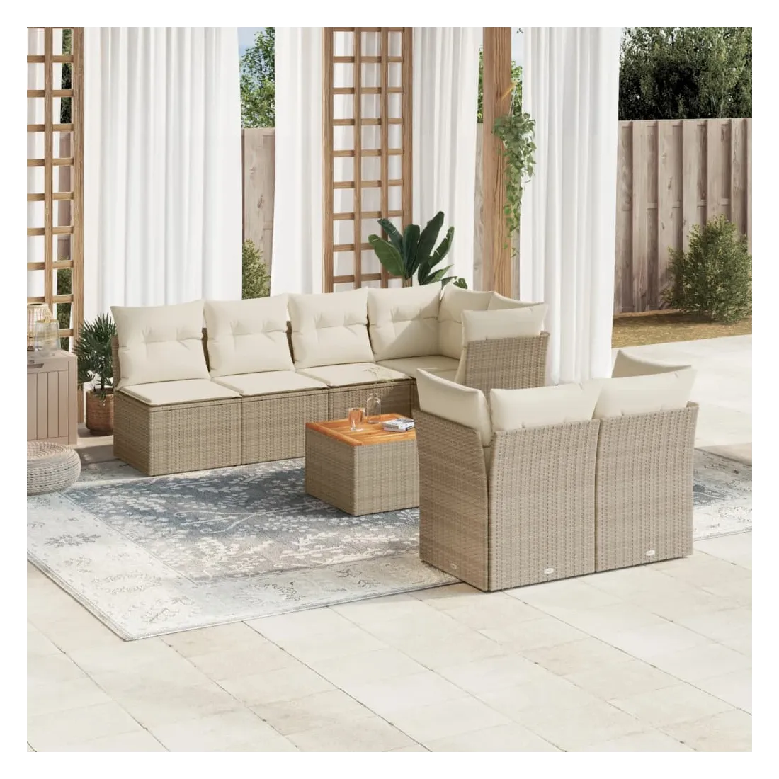 Salon de jardin avec coussins 8 pcs beige résine tressée