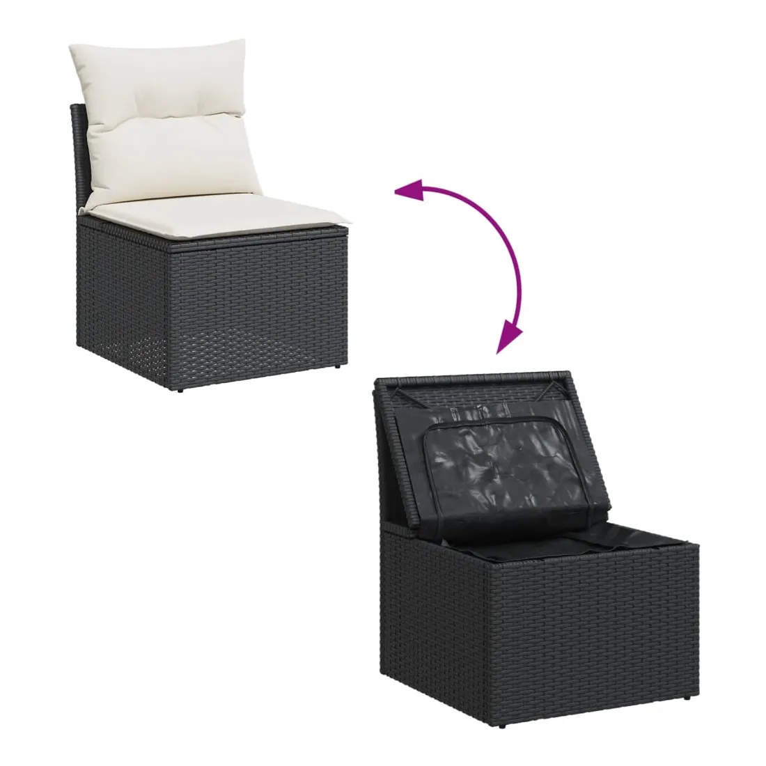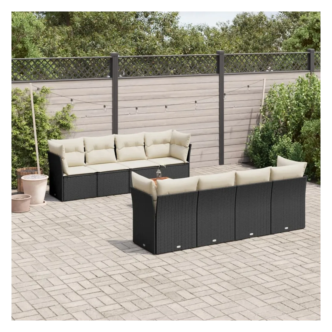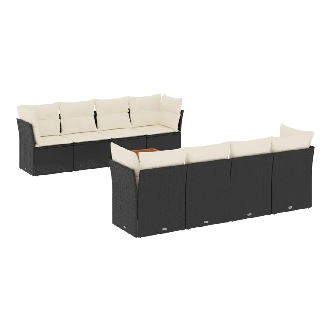 Salon de jardin 9 pcs avec coussins noir résine tressée