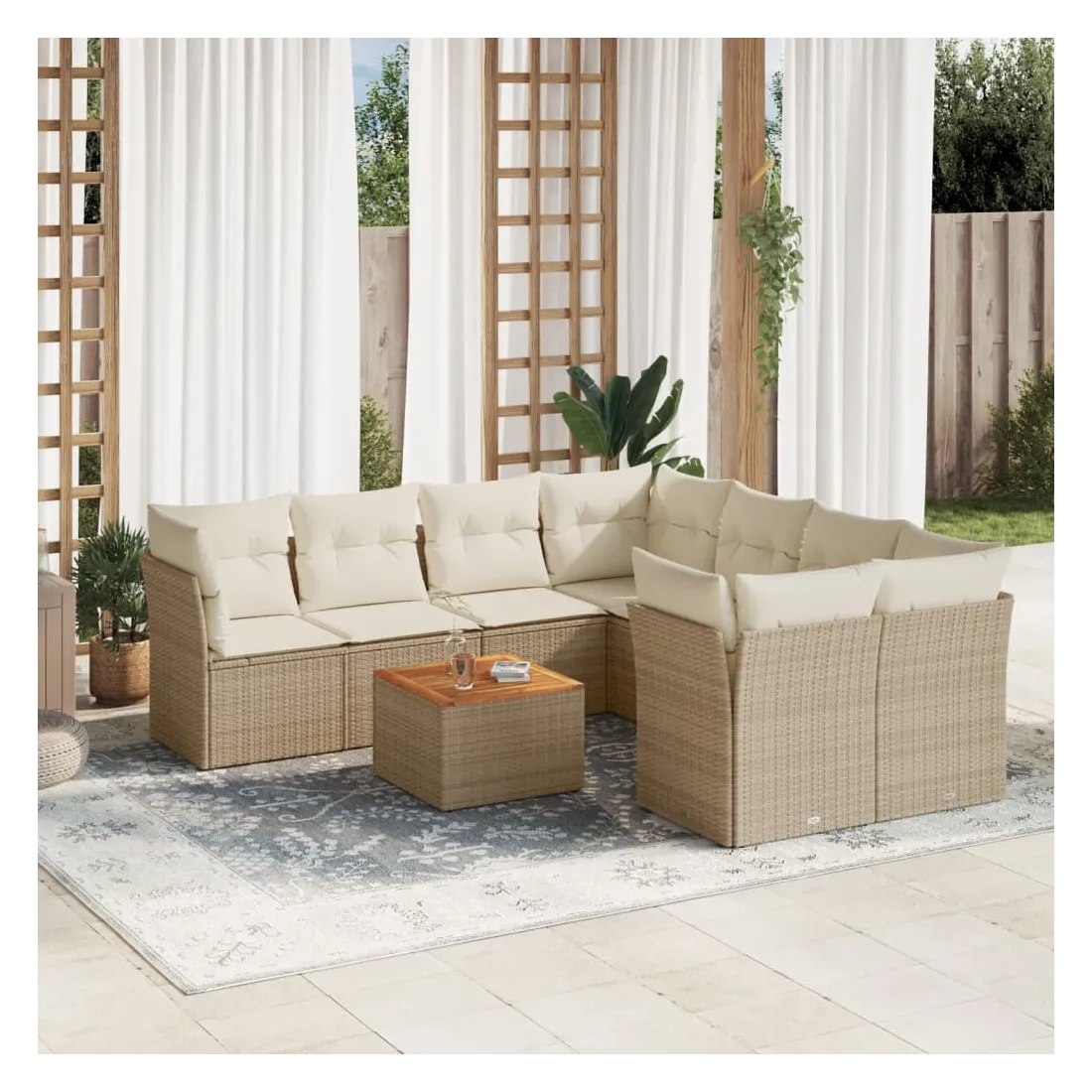 Salon de jardin avec coussins 9 pcs beige résine tressée