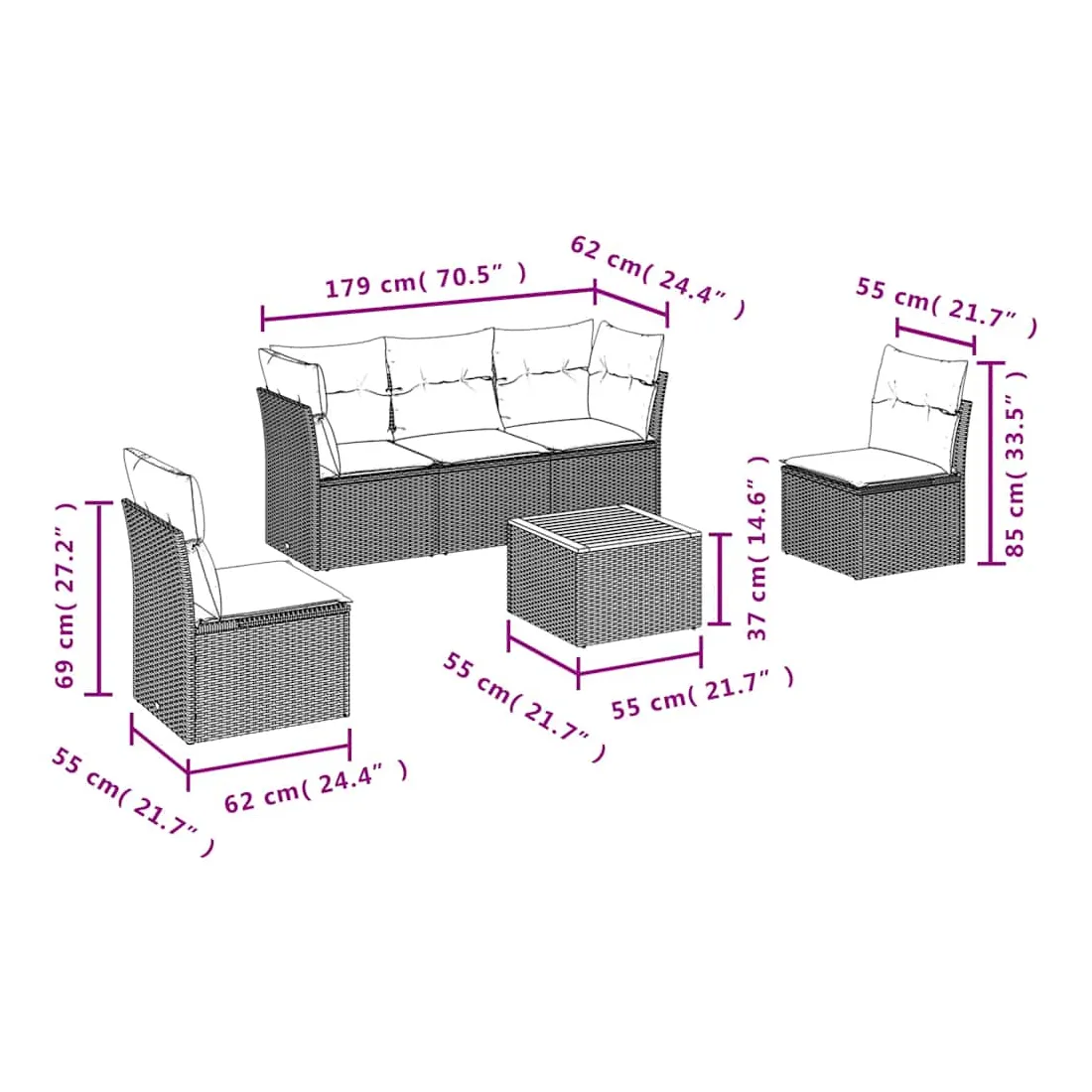- Dimensions : 55 x 55 x 37 cm (L x l x H)