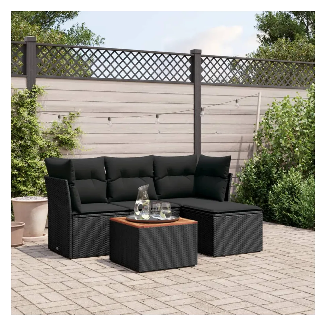 Cet ensemble de canapés de jardin est le complément parfait de votre arrière-cour, terrasse ou patio, offrant un espace confortable et accueillant pour discuter avec la famille et les amis ou simplement se détendre et profiter de l'extérieur. Matériau durable : la résine tressée, également connue sous le nom de poly rotin, est un matériau synthétique solide et nécessitant peu d'entretien qui ressemble au rotin naturel. Il est léger, facile à nettoyer et couramment utilisé pour les meubles d'extérieur en raison de sa durabilité et de ses propriétés de résistance aux intempéries.Fonction de rangement avec sac résistant à l'eau : chaque siège de jardin dispose d'un espace de rangement sous l'assise, complété par un sac résistant à l'eau pour ranger les coussins, les jouets et d'autres objets. Les sacs intérieurs sont dotés d'un couvercle et peuvent être solidement fixés aux sièges à l'aide de bandes auto-agrippantes pour plus de stabilité.Dessus stable et facile à nettoyer : cette table de jardin a un dessus en bois d'acacia robuste, durable et facile à nettoyer avec un chiffon humide.Pouf polyvalent : le tabouret est polyvalent, servant de repose-pieds confortable lorsque vous vous prélassez sur le canapé ou de siège supplémentaire dans votre jardin.Conception modulaire : cet ensemble de meubles d'extérieur a une conception modulaire, ce qui le rend complètement flexible et facile à déplacer, afin que vous puissiez créer un agencement de meubles d'extérieur personnalisé. Bon à savoir :Pour que vos meubles d'extérieur restent beaux, nous vous recommandons de les protéger avec une housse imperméable.