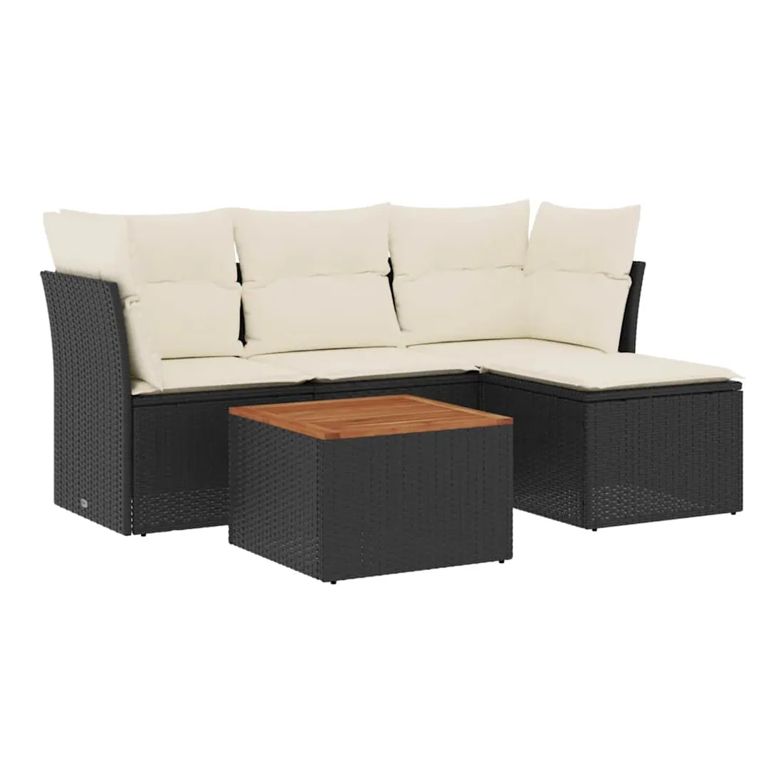 Cet ensemble de canapés de jardin est le complément parfait de votre arrière-cour, terrasse ou patio, offrant un espace confortable et accueillant pour discuter avec la famille et les amis ou simplement se détendre et profiter de l'extérieur. Matériau durable : la résine tressée, également connue sous le nom de poly rotin, est un matériau synthétique solide et nécessitant peu d'entretien qui ressemble au rotin naturel. Il est léger, facile à nettoyer et couramment utilisé pour les meubles d'extérieur en raison de sa durabilité et de ses propriétés de résistance aux intempéries.Fonction de rangement avec sac résistant à l'eau : chaque siège de jardin dispose d'un espace de rangement sous l'assise, complété par un sac résistant à l'eau pour ranger les coussins, les jouets et d'autres objets. Les sacs intérieurs sont dotés d'un couvercle et peuvent être solidement fixés aux sièges à l'aide de bandes auto-agrippantes pour plus de stabilité.Dessus stable et facile à nettoyer : cette table de jardin a un dessus en bois d'acacia robuste, durable et facile à nettoyer avec un chiffon humide.Pouf polyvalent : le tabouret est polyvalent, servant de repose-pieds confortable lorsque vous vous prélassez sur le canapé ou de siège supplémentaire dans votre jardin.Conception modulaire : cet ensemble de meubles d'extérieur a une conception modulaire, ce qui le rend complètement flexible et facile à déplacer, afin que vous puissiez créer un agencement de meubles d'extérieur personnalisé. Bon à savoir :Pour que vos meubles d'extérieur restent beaux, nous vous recommandons de les protéger avec une housse imperméable.