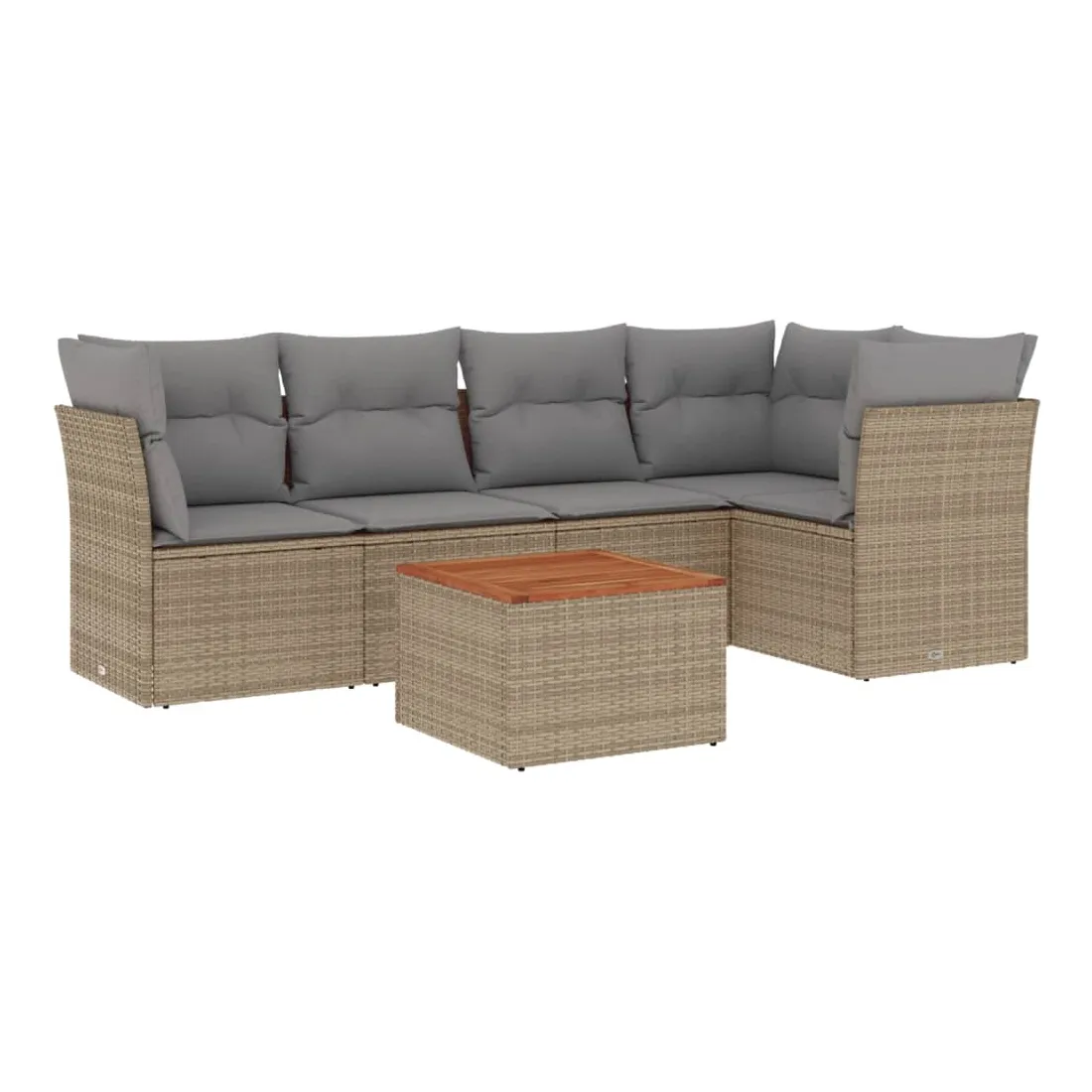 Salon de jardin avec coussins 6pcs mélange beige résine tressée