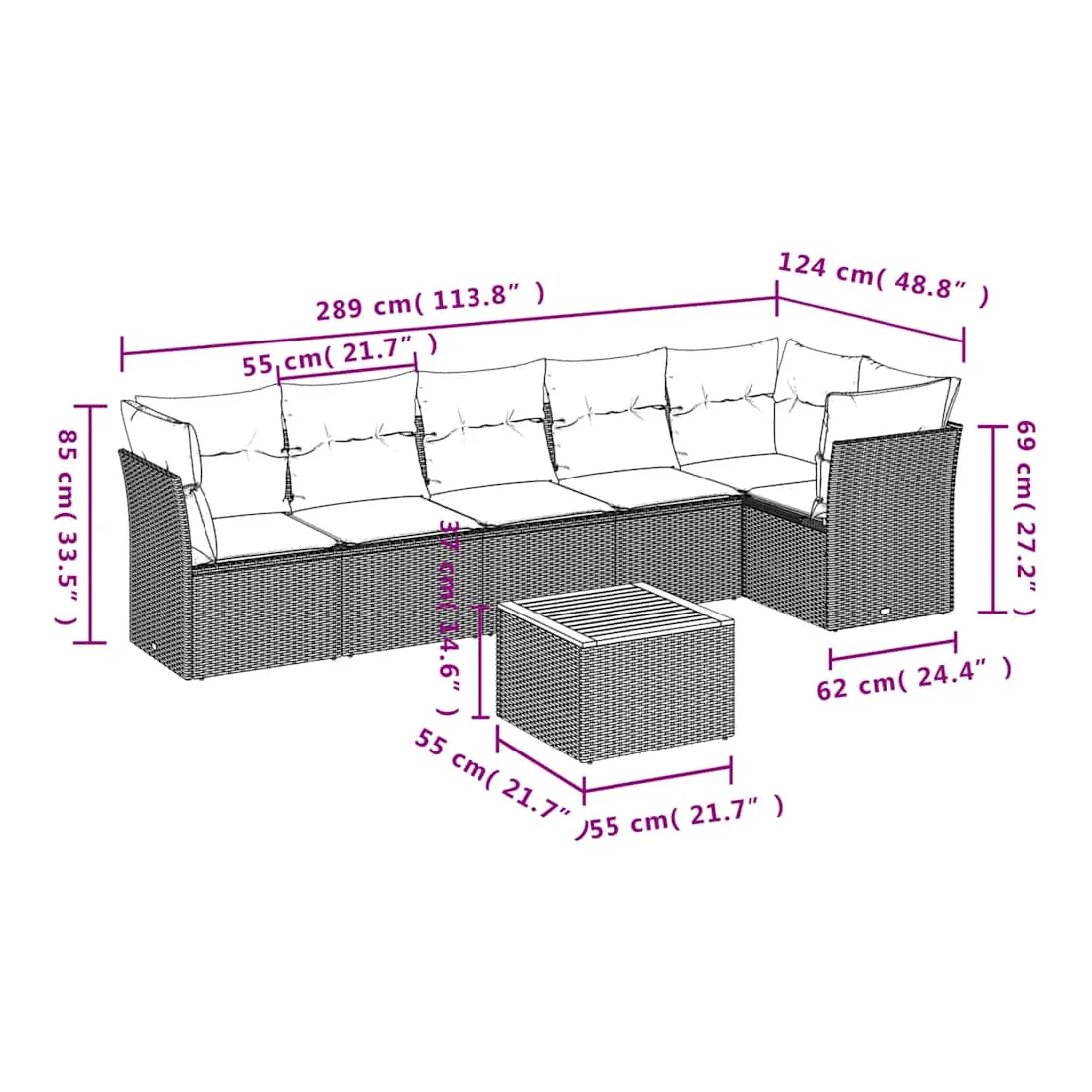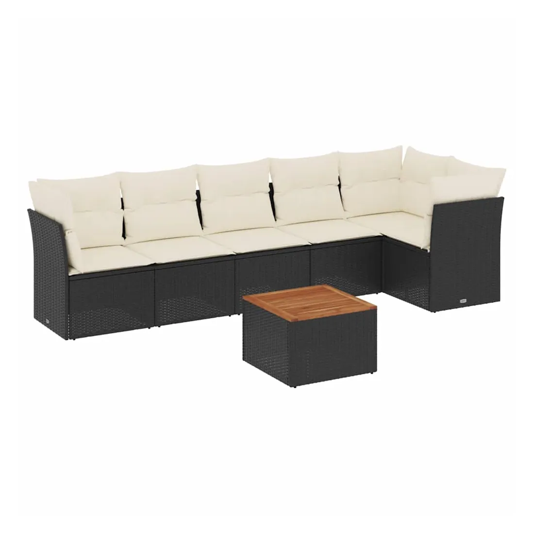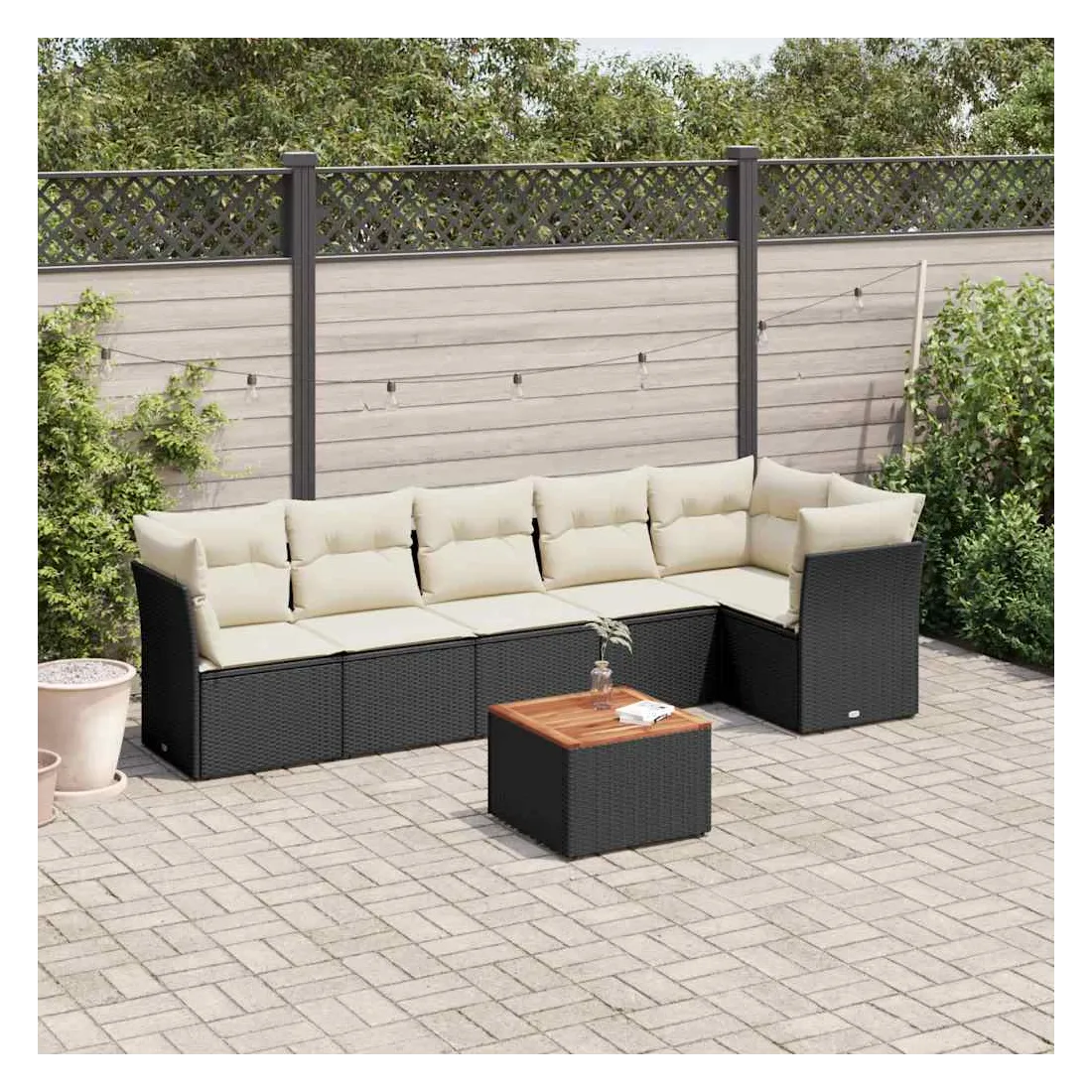 Salon de jardin 7 pcs avec coussins noir résine tressée