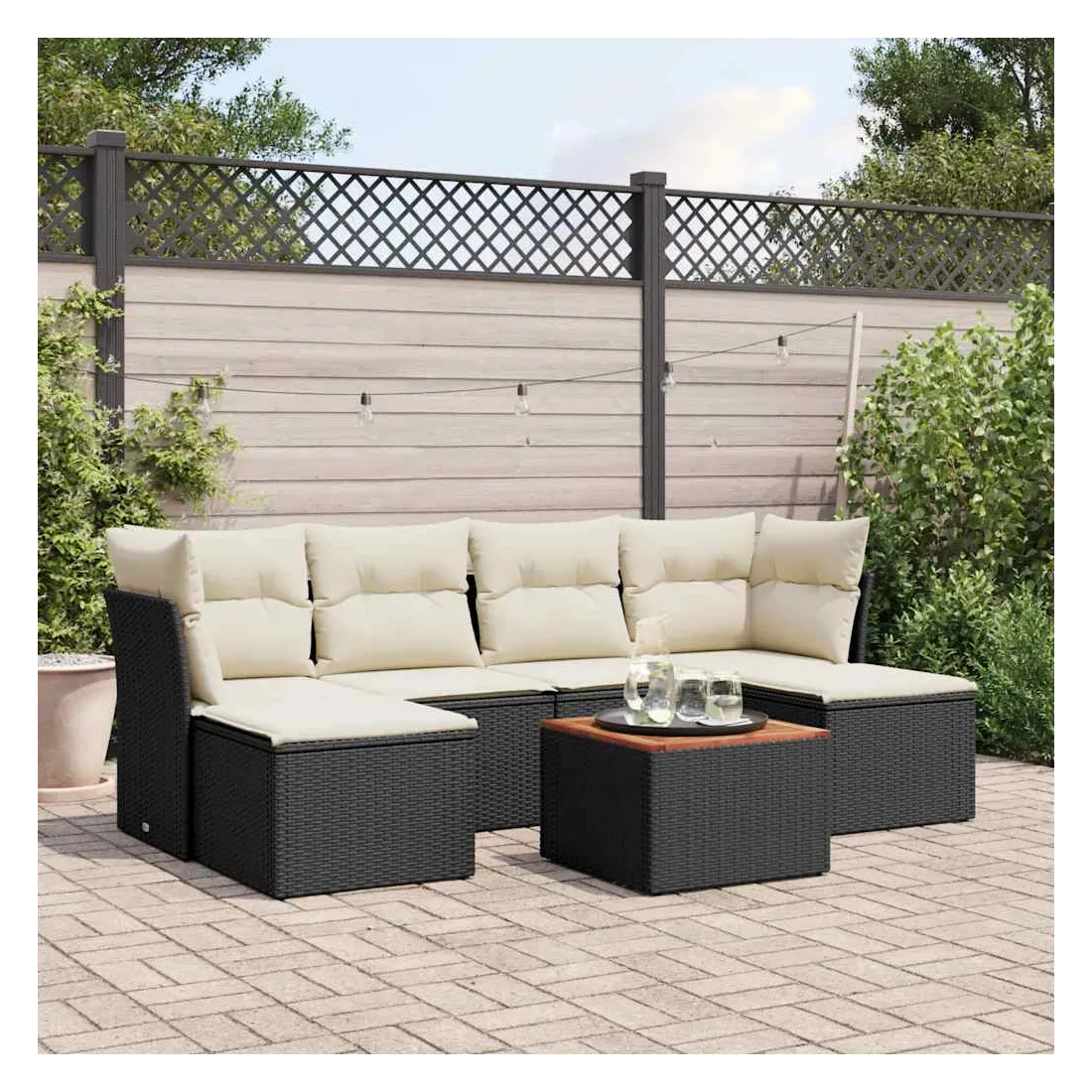 Cet ensemble de canapés de jardin est le complément parfait de votre arrière-cour, terrasse ou patio, offrant un espace confortable et accueillant pour discuter avec la famille et les amis ou simplement se détendre et profiter de l'extérieur. Matériau durable : la résine tressée, également connue sous le nom de poly rotin, est un matériau synthétique solide et nécessitant peu d'entretien qui ressemble au rotin naturel. Il est léger, facile à nettoyer et couramment utilisé pour les meubles d'extérieur en raison de sa durabilité et de ses propriétés de résistance aux intempéries.Fonction de rangement avec sac résistant à l'eau : chaque siège de jardin dispose d'un espace de rangement sous l'assise, complété par un sac résistant à l'eau pour ranger les coussins, les jouets et d'autres objets. Les sacs intérieurs sont dotés d'un couvercle et peuvent être solidement fixés aux sièges à l'aide de bandes auto-agrippantes pour plus de stabilité.Dessus stable et facile à nettoyer : cette table de jardin a un dessus en bois d'acacia robuste, durable et facile à nettoyer avec un chiffon humide.Pouf polyvalent : le tabouret est polyvalent, servant de repose-pieds confortable lorsque vous vous prélassez sur le canapé ou de siège supplémentaire dans votre jardin.Conception modulaire : cet ensemble de meubles d'extérieur a une conception modulaire, ce qui le rend complètement flexible et facile à déplacer, afin que vous puissiez créer un agencement de meubles d'extérieur personnalisé. Bon à savoir :Pour que vos meubles d'extérieur restent beaux, nous vous recommandons de les protéger avec une housse imperméable.