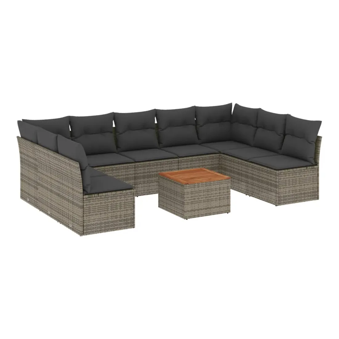 Cet ensemble de canapés de jardin est le complément parfait de votre arrière-cour, terrasse ou patio, offrant un espace confortable et accueillant pour discuter avec la famille et les amis ou simplement se détendre et profiter de l'extérieur. Matériau durable : la résine tressée, également connue sous le nom de poly rotin, est un matériau synthétique solide et nécessitant peu d'entretien qui ressemble au rotin naturel. Il est léger, facile à nettoyer et couramment utilisé pour les meubles d'extérieur en raison de sa durabilité et de ses propriétés de résistance aux intempéries.Fonction de rangement avec sac résistant à l'eau : chaque siège de jardin dispose d'un espace de rangement sous l'assise, complété par un sac résistant à l'eau pour ranger les coussins, les jouets et d'autres objets. Les sacs intérieurs sont dotés d'un couvercle et peuvent être solidement fixés aux sièges à l'aide de bandes auto-agrippantes pour plus de stabilité.Dessus stable et facile à nettoyer : cette table de jardin a un dessus en bois d'acacia robuste, durable et facile à nettoyer avec un chiffon humide.Housse amovible et lavable : ces coussins de siège sont dotés de housses amovibles pour un lavage et un entretien faciles.Conception modulaire : cet ensemble de meubles d'extérieur a une conception modulaire, ce qui le rend complètement flexible et facile à déplacer, afin que vous puissiez créer un agencement de meubles d'extérieur personnalisé. Bon à savoir :Pour que vos meubles d'extérieur restent beaux, nous vous recommandons de les protéger avec une housse imperméable.
