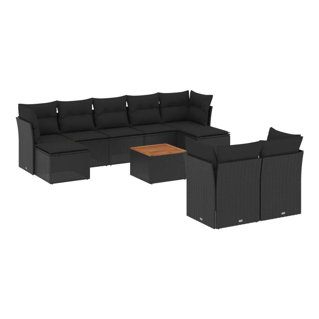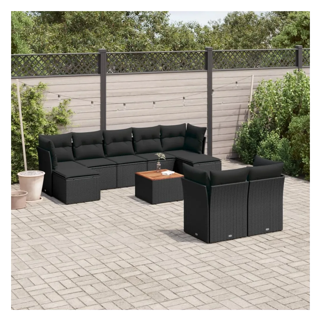Cet ensemble de canapés de jardin est le complément parfait de votre arrière-cour, terrasse ou patio, offrant un espace confortable et accueillant pour discuter avec la famille et les amis ou simplement se détendre et profiter de l'extérieur. Matériau durable : la résine tressée, également connue sous le nom de poly rotin, est un matériau synthétique solide et nécessitant peu d'entretien qui ressemble au rotin naturel. Il est léger, facile à nettoyer et couramment utilisé pour les meubles d'extérieur en raison de sa durabilité et de ses propriétés de résistance aux intempéries.Fonction de rangement avec sac résistant à l'eau : chaque siège de jardin dispose d'un espace de rangement sous l'assise, complété par un sac résistant à l'eau pour ranger les coussins, les jouets et d'autres objets. Les sacs intérieurs sont dotés d'un couvercle et peuvent être solidement fixés aux sièges à l'aide de bandes auto-agrippantes pour plus de stabilité.Dessus stable et facile à nettoyer : cette table de jardin a un dessus en bois d'acacia robuste, durable et facile à nettoyer avec un chiffon humide.Pouf polyvalent : le tabouret est polyvalent, servant de repose-pieds confortable lorsque vous vous prélassez sur le canapé ou de siège supplémentaire dans votre jardin.Conception modulaire : cet ensemble de meubles d'extérieur a une conception modulaire, ce qui le rend complètement flexible et facile à déplacer, afin que vous puissiez créer un agencement de meubles d'extérieur personnalisé. Bon à savoir :Pour que vos meubles d'extérieur restent beaux, nous vous recommandons de les protéger avec une housse imperméable.