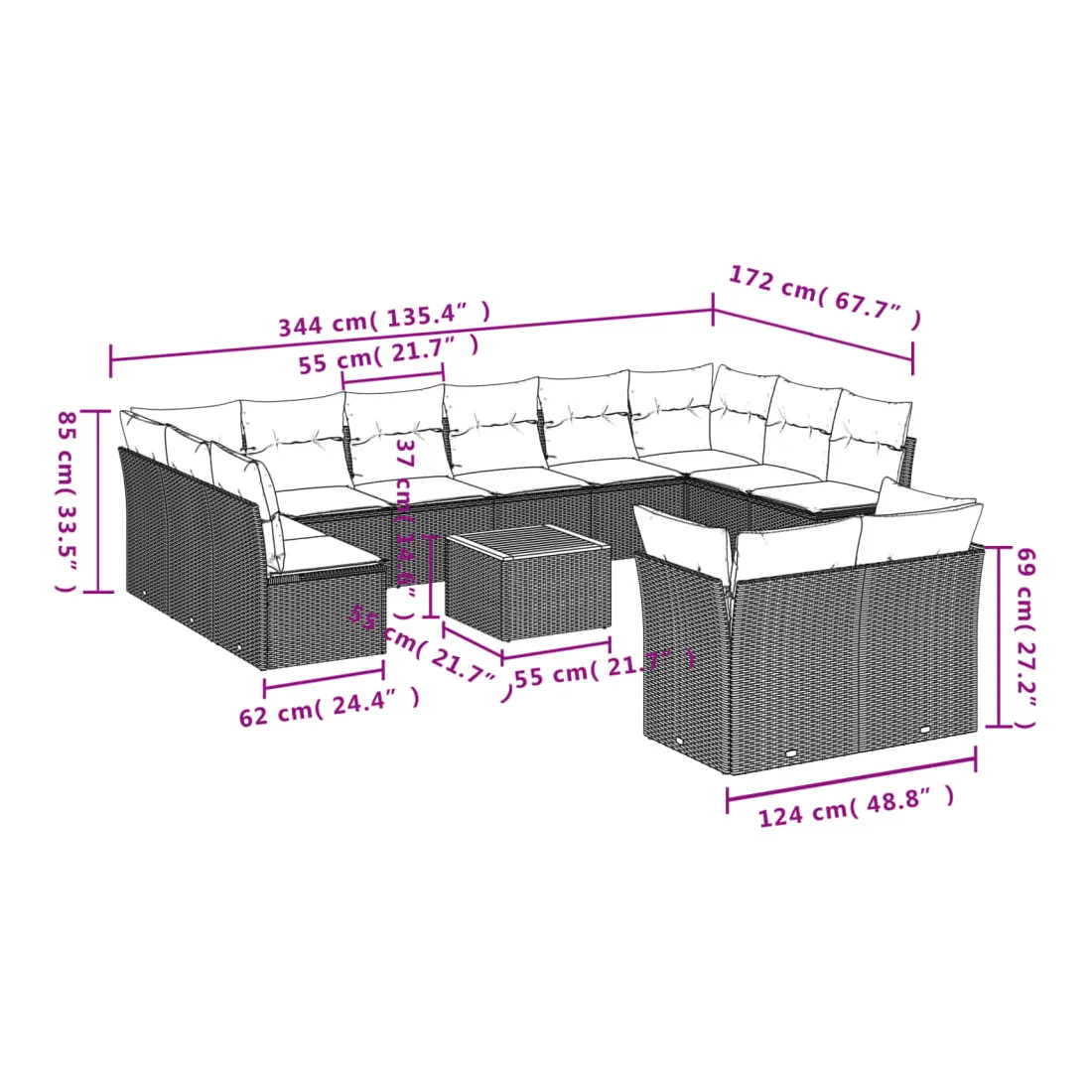 - Dimensions du coussin de dossier : 55 x 45 x 13 cm (L x l x é)
