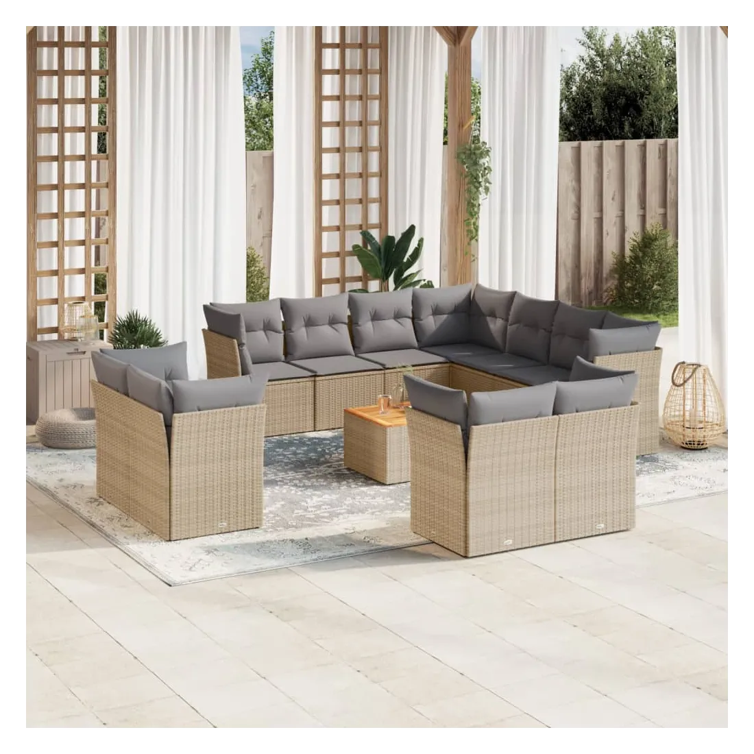 vidaXLCet ensemble de canapés de jardin est le complément parfait de votre arrière-cour, terrasse ou patio, offrant un espace confortable et accueillant pour discuter avec la famille et les amis ou simplement se détendre et profiter de l'extérieur. Matériau durable : la résine tressée, également connue sous le nom de poly rotin, est un matériau synthétique solide et nécessitant peu d'entretien qui ressemble au rotin naturel. Il est léger, facile à nettoyer et couramment utilisé pour les meubles d'extérieur en raison de sa durabilité et de ses propriétés de résistance aux intempéries.Fonction de rangement avec sac résistant à l'eau : chaque siège de jardin dispose d'un espace de rangement sous l'assise, complété par un sac résistant à l'eau pour ranger les coussins, les jouets et d'autres objets. Les sacs intérieurs sont dotés d'un couvercle et peuvent être solidement fixés aux sièges à l'aide de bandes auto-agrippantes pour plus de stabilité.Dessus stable et facile à nettoyer : cette table de jardin a un dessus en bois d'acacia robuste, durable et facile à nettoyer avec un chiffon humide.Housse amovible et lavable : ces coussins de siège sont dotés de housses amovibles pour un lavage et un entretien faciles.Conception modulaire : cet ensemble de meubles d'extérieur a une conception modulaire, ce qui le rend complètement flexible et facile à déplacer, afin que vous puissiez créer un agencement de meubles d'extérieur personnalisé. Bon à savoir :Pour que vos meubles d'extérieur restent beaux, nous vous recommandons de les protéger avec une housse imperméable.