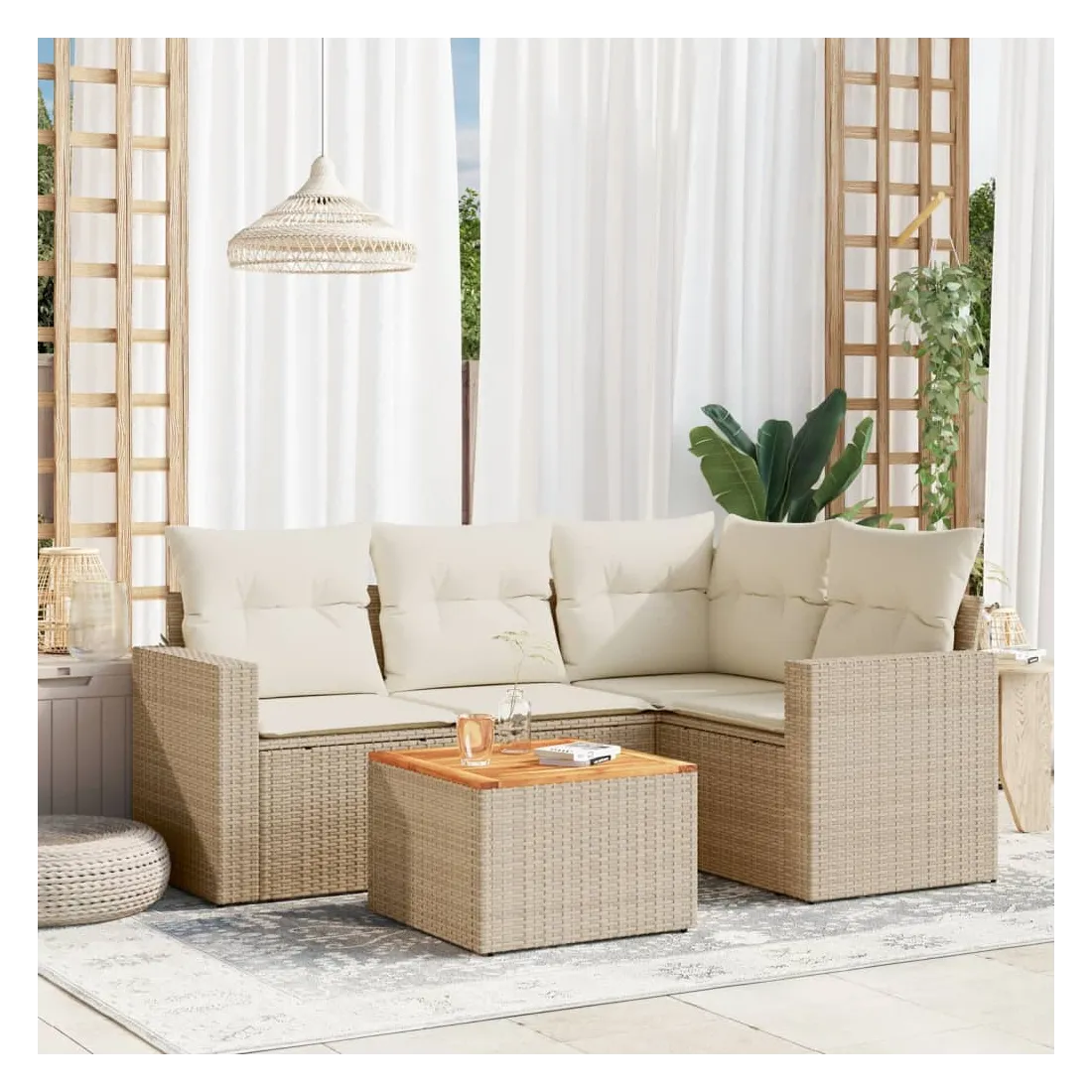 Cet ensemble de canapés de jardin est le complément parfait de votre arrière-cour, terrasse ou patio, offrant un espace confortable et accueillant pour discuter avec la famille et les amis ou simplement se détendre et profiter de l'extérieur. Matériau durable : la résine tressée, également connue sous le nom de poly rotin, est un matériau synthétique solide et nécessitant peu d'entretien qui ressemble au rotin naturel. Il est léger, facile à nettoyer et couramment utilisé pour les meubles d'extérieur en raison de sa durabilité et de ses propriétés de résistance aux intempéries.Fonction de rangement avec sac résistant à l'eau : chaque siège de jardin dispose d'un espace de rangement sous l'assise, complété par un sac résistant à l'eau pour ranger les coussins, les jouets et d'autres objets. Les sacs intérieurs sont dotés d'un couvercle et peuvent être solidement fixés aux sièges à l'aide de bandes auto-agrippantes pour plus de stabilité.Dessus stable et facile à nettoyer : cette table de jardin a un dessus en bois d'acacia robuste, durable et facile à nettoyer avec un chiffon humide.Housse amovible et lavable : ces coussins de siège sont dotés de housses amovibles pour un lavage et un entretien faciles.Conception modulaire : cet ensemble de meubles d'extérieur a une conception modulaire, ce qui le rend complètement flexible et facile à déplacer, afin que vous puissiez créer un agencement de meubles d'extérieur personnalisé. Bon à savoir :Pour que vos meubles d'extérieur restent beaux, nous vous recommandons de les protéger avec une housse imperméable.