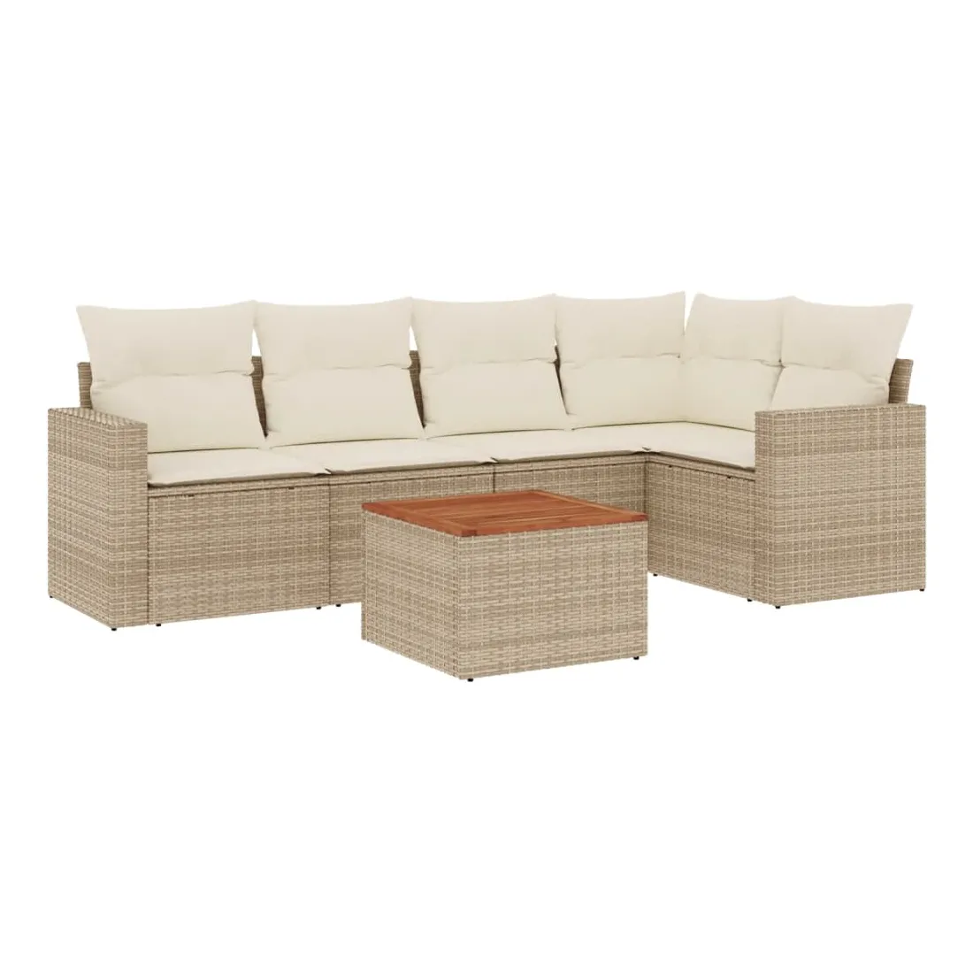 Salon de jardin avec coussins 6 pcs beige résine tressée