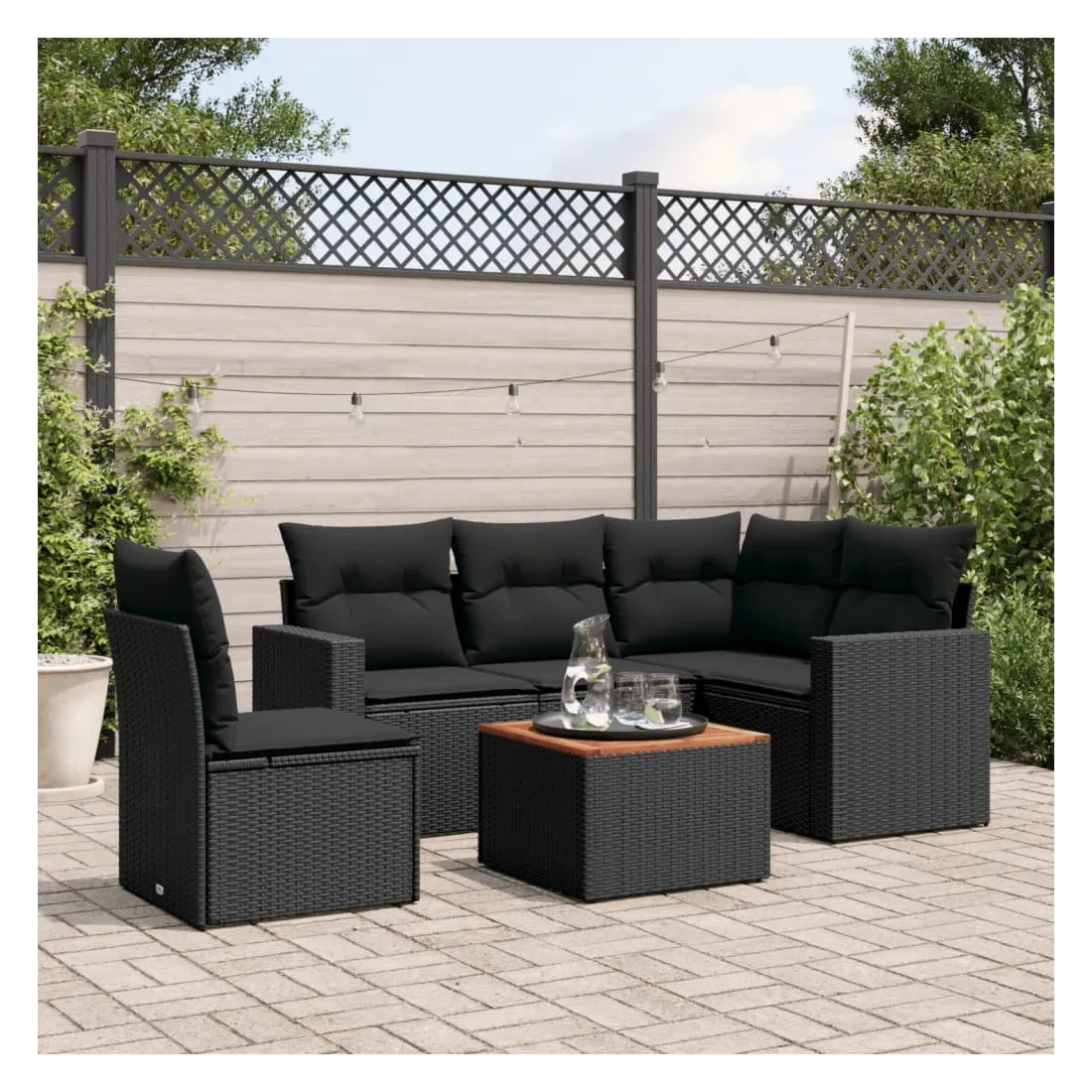Cet ensemble de canapés de jardin est le complément parfait de votre arrière-cour, terrasse ou patio, offrant un espace confortable et accueillant pour discuter avec la famille et les amis ou simplement se détendre et profiter de l'extérieur. Matériau durable : la résine tressée, également connue sous le nom de poly rotin, est un matériau synthétique solide et nécessitant peu d'entretien qui ressemble au rotin naturel. Il est léger, facile à nettoyer et couramment utilisé pour les meubles d'extérieur en raison de sa durabilité et de ses propriétés de résistance aux intempéries.Fonction de rangement avec sac résistant à l'eau : chaque siège de jardin dispose d'un espace de rangement sous l'assise, complété par un sac résistant à l'eau pour ranger les coussins, les jouets et d'autres objets. Les sacs intérieurs sont dotés d'un couvercle et peuvent être solidement fixés aux sièges à l'aide de bandes auto-agrippantes pour plus de stabilité.Dessus stable et facile à nettoyer : cette table de jardin a un dessus en bois d'acacia robuste, durable et facile à nettoyer avec un chiffon humide.Housse amovible et lavable : ces coussins de siège sont dotés de housses amovibles pour un lavage et un entretien faciles.Conception modulaire : cet ensemble de meubles d'extérieur a une conception modulaire, ce qui le rend complètement flexible et facile à déplacer, afin que vous puissiez créer un agencement de meubles d'extérieur personnalisé. Bon à savoir :Pour que vos meubles d'extérieur restent beaux, nous vous recommandons de les protéger avec une housse imperméable.
