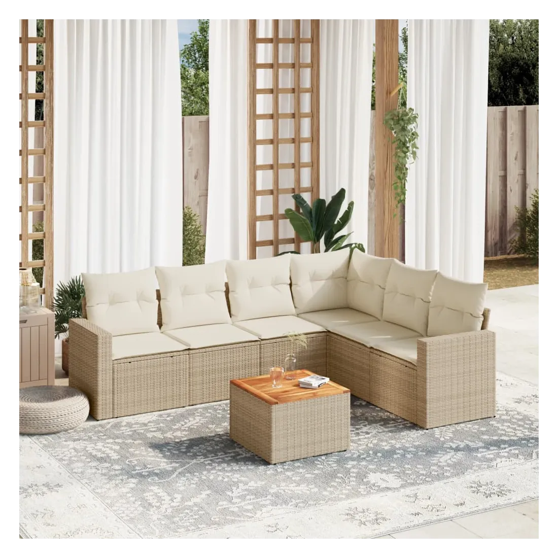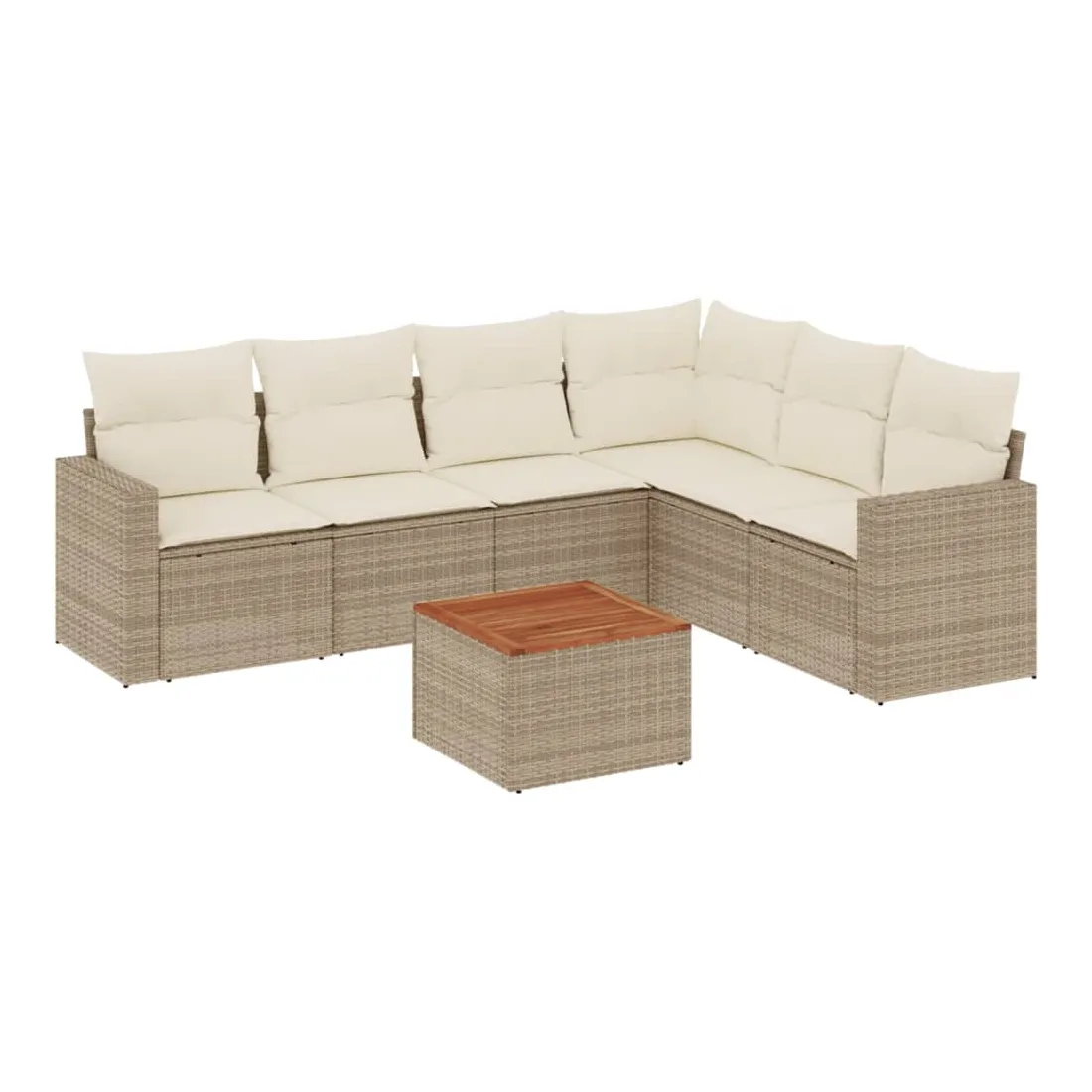 Salon de jardin avec coussins 7 pcs beige résine tressée