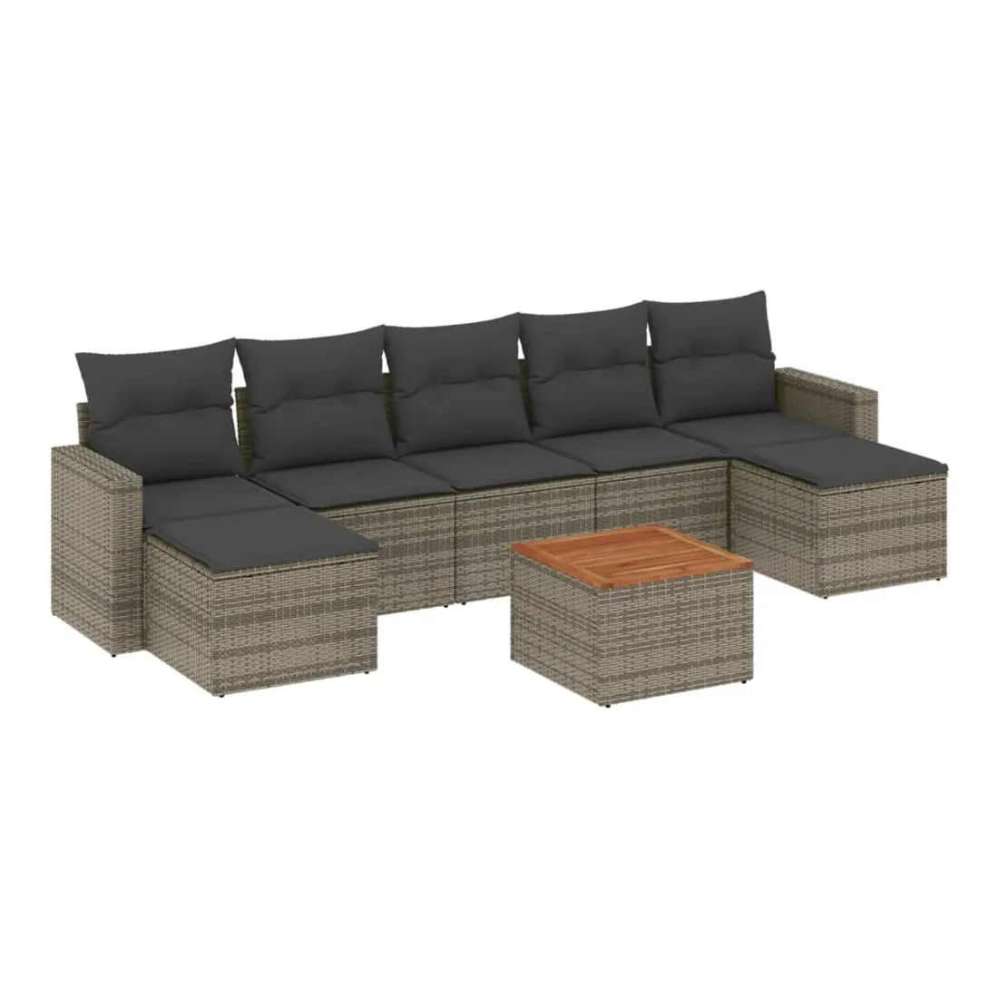 Cet ensemble de canapés de jardin est le complément parfait de votre arrière-cour, terrasse ou patio, offrant un espace confortable et accueillant pour discuter avec la famille et les amis ou simplement se détendre et profiter de l'extérieur. Matériau durable : la résine tressée, également connue sous le nom de poly rotin, est un matériau synthétique solide et nécessitant peu d'entretien qui ressemble au rotin naturel. Il est léger, facile à nettoyer et couramment utilisé pour les meubles d'extérieur en raison de sa durabilité et de ses propriétés de résistance aux intempéries.Fonction de rangement avec sac résistant à l'eau : chaque siège de jardin dispose d'un espace de rangement sous l'assise, complété par un sac résistant à l'eau pour ranger les coussins, les jouets et d'autres objets. Les sacs intérieurs sont dotés d'un couvercle et peuvent être solidement fixés aux sièges à l'aide de bandes auto-agrippantes pour plus de stabilité.Dessus stable et facile à nettoyer : cette table de jardin a un dessus en bois d'acacia robuste, durable et facile à nettoyer avec un chiffon humide.Pouf polyvalent : le tabouret est polyvalent, servant de repose-pieds confortable lorsque vous vous prélassez sur le canapé ou de siège supplémentaire dans votre jardin.Conception modulaire : cet ensemble de meubles d'extérieur a une conception modulaire, ce qui le rend complètement flexible et facile à déplacer, afin que vous puissiez créer un agencement de meubles d'extérieur personnalisé. Bon à savoir :Pour que vos meubles d'extérieur restent beaux, nous vous recommandons de les protéger avec une housse imperméable.