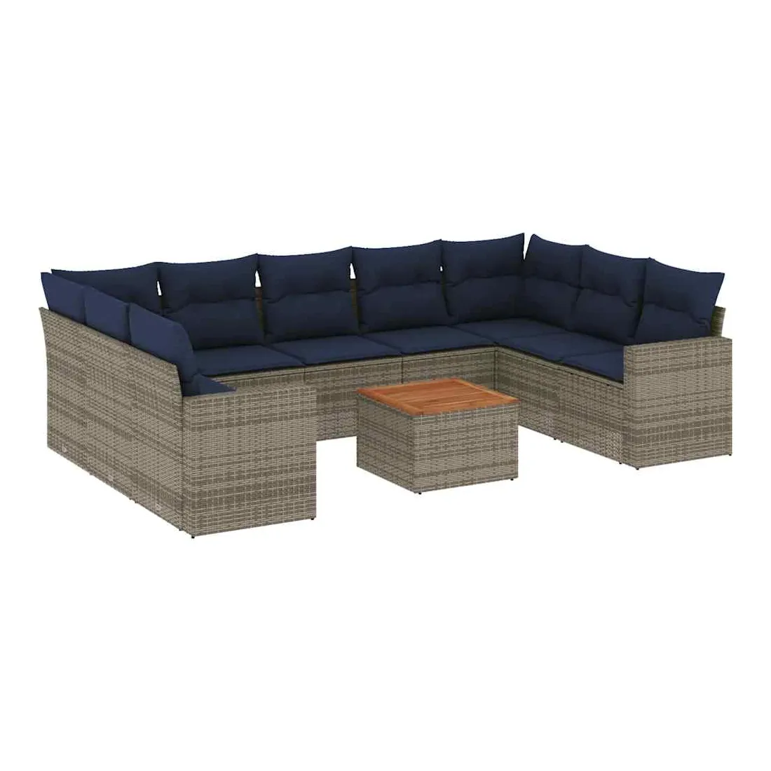 Salon de jardin 10 pcs avec coussins gris résine tressée