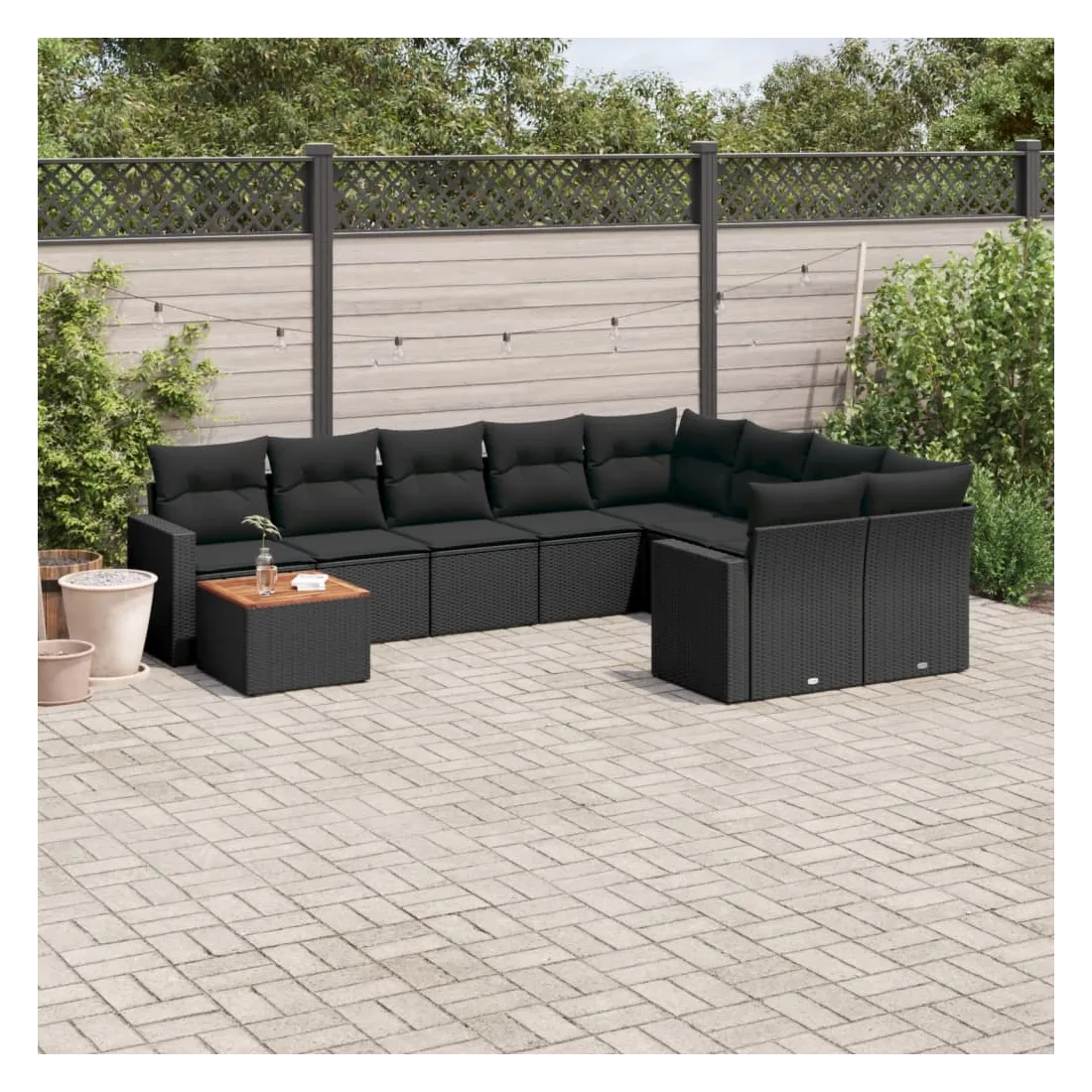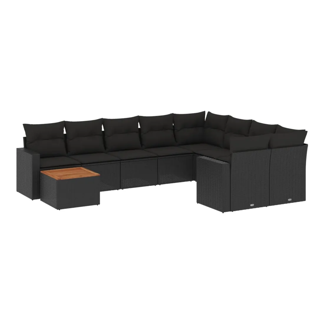 Salon de jardin 10 pcs avec coussins noir résine tressée