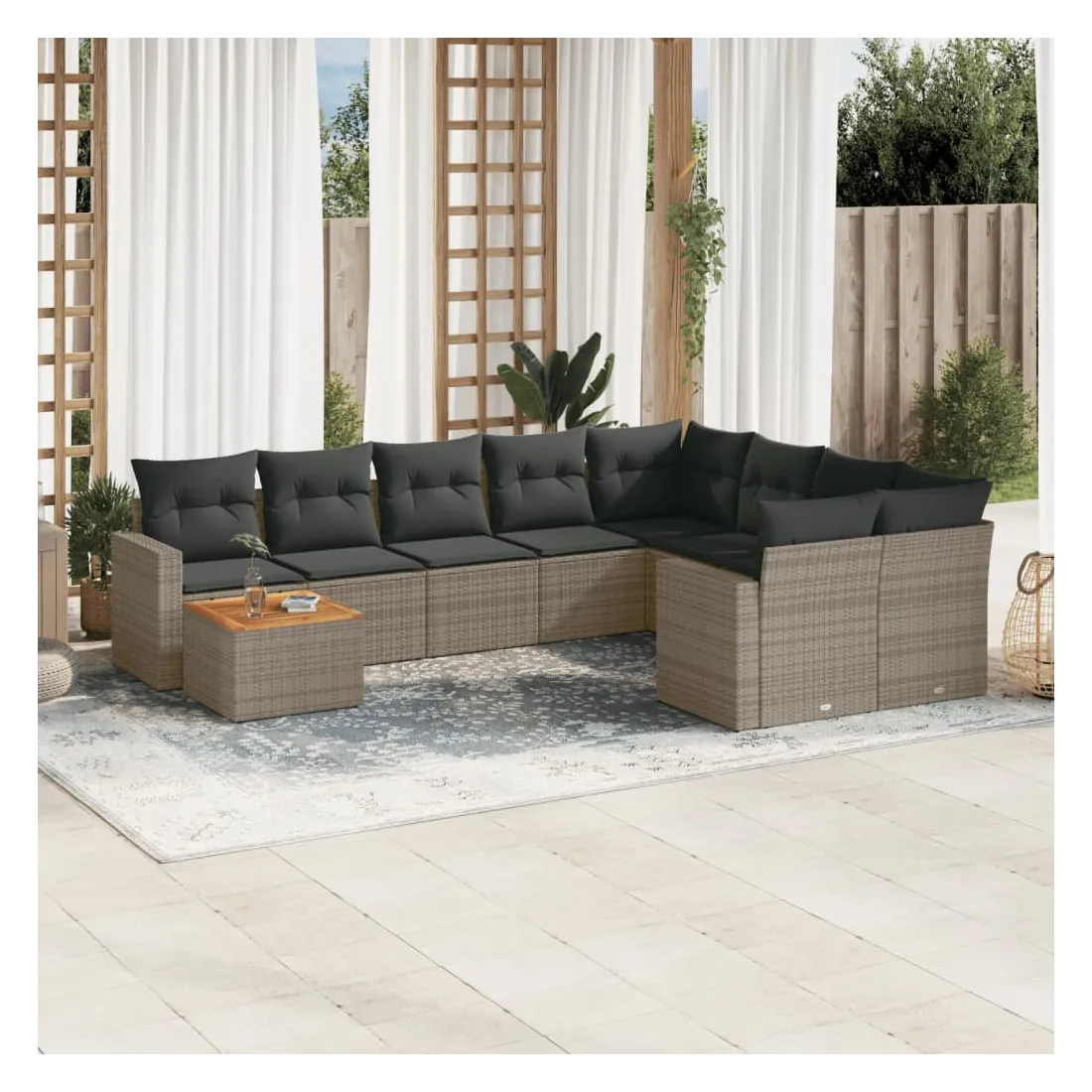 Salon de jardin avec coussins 10 pcs gris résine tressée