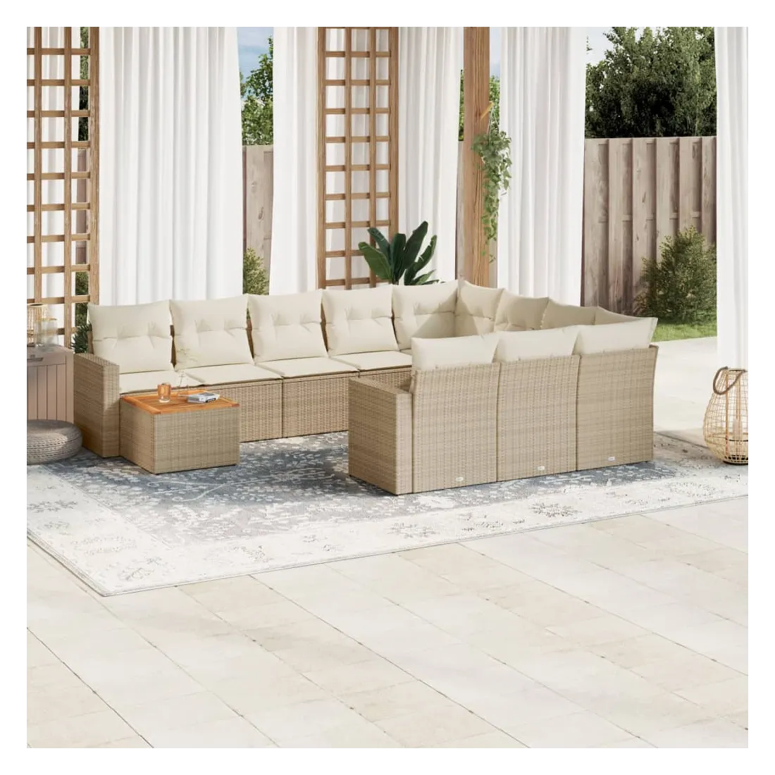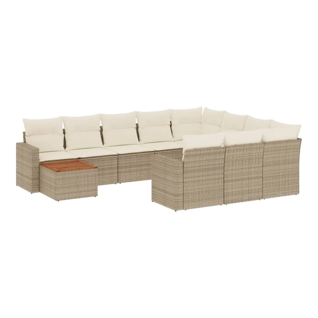Salon de jardin 11 pcs avec coussins beige résine tressée