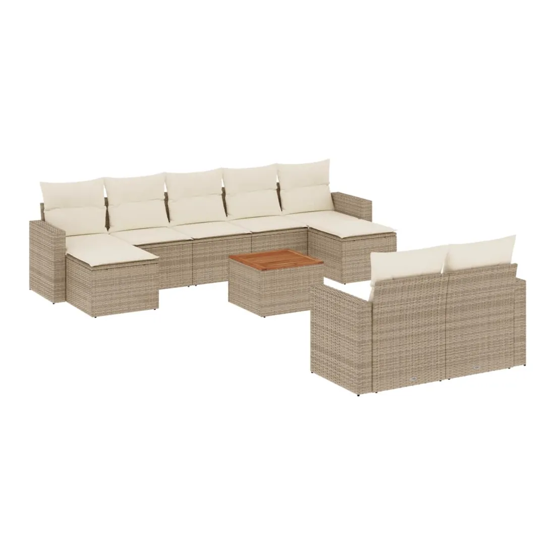 Cet ensemble de canapés de jardin est le complément parfait de votre arrière-cour, terrasse ou patio, offrant un espace confortable et accueillant pour discuter avec la famille et les amis ou simplement se détendre et profiter de l'extérieur. Matériau durable : la résine tressée, également connue sous le nom de poly rotin, est un matériau synthétique solide et nécessitant peu d'entretien qui ressemble au rotin naturel. Il est léger, facile à nettoyer et couramment utilisé pour les meubles d'extérieur en raison de sa durabilité et de ses propriétés de résistance aux intempéries.Fonction de rangement avec sac résistant à l'eau : chaque siège de jardin dispose d'un espace de rangement sous l'assise, complété par un sac résistant à l'eau pour ranger les coussins, les jouets et d'autres objets. Les sacs intérieurs sont dotés d'un couvercle et peuvent être solidement fixés aux sièges à l'aide de bandes auto-agrippantes pour plus de stabilité.Dessus stable et facile à nettoyer : cette table de jardin a un dessus en bois d'acacia robuste, durable et facile à nettoyer avec un chiffon humide.Pouf polyvalent : le tabouret est polyvalent, servant de repose-pieds confortable lorsque vous vous prélassez sur le canapé ou de siège supplémentaire dans votre jardin.Conception modulaire : cet ensemble de meubles d'extérieur a une conception modulaire, ce qui le rend complètement flexible et facile à déplacer, afin que vous puissiez créer un agencement de meubles d'extérieur personnalisé. Bon à savoir :Pour que vos meubles d'extérieur restent beaux, nous vous recommandons de les protéger avec une housse imperméable.