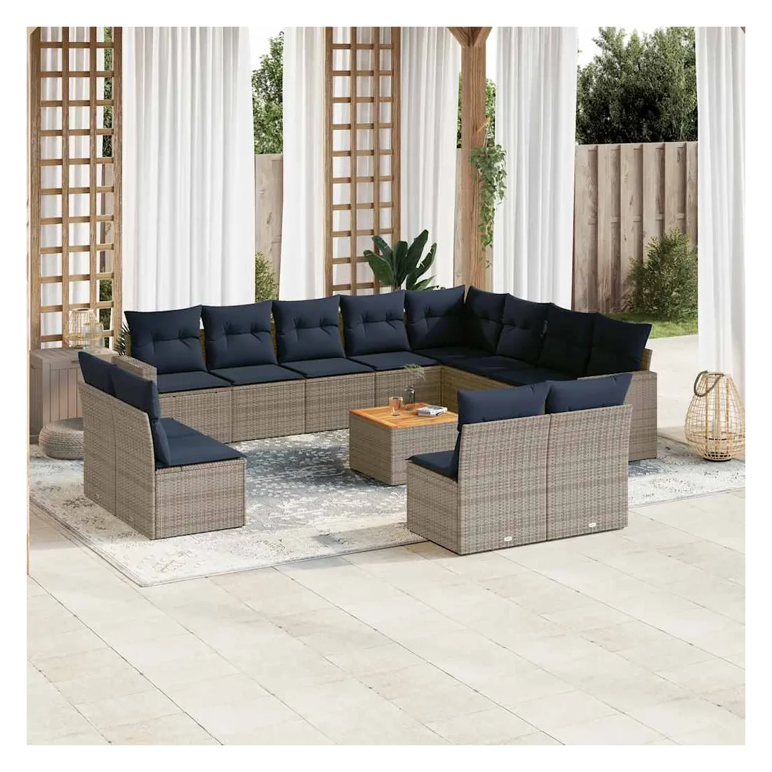 Cet ensemble de canapés de jardin est le complément parfait de votre arrière-cour, terrasse ou patio, offrant un espace confortable et accueillant pour discuter avec la famille et les amis ou simplement se détendre et profiter de l'extérieur. Matériau durable : la résine tressée, également connue sous le nom de poly rotin, est un matériau synthétique solide et nécessitant peu d'entretien qui ressemble au rotin naturel. Il est léger, facile à nettoyer et couramment utilisé pour les meubles d'extérieur en raison de sa durabilité et de ses propriétés de résistance aux intempéries.Fonction de rangement avec sac résistant à l'eau : chaque siège de jardin dispose d'un espace de rangement sous l'assise, complété par un sac résistant à l'eau pour ranger les coussins, les jouets et d'autres objets. Les sacs intérieurs sont dotés d'un couvercle et peuvent être solidement fixés aux sièges à l'aide de bandes auto-agrippantes pour plus de stabilité.Dessus stable et facile à nettoyer : cette table de jardin a un dessus en bois d'acacia robuste, durable et facile à nettoyer avec un chiffon humide.Housse amovible et lavable : ces coussins de siège sont dotés de housses amovibles pour un lavage et un entretien faciles.Conception modulaire : cet ensemble de meubles d'extérieur a une conception modulaire, ce qui le rend complètement flexible et facile à déplacer, afin que vous puissiez créer un agencement de meubles d'extérieur personnalisé. Bon à savoir :Pour que vos meubles d'extérieur restent beaux, nous vous recommandons de les protéger avec une housse imperméable.