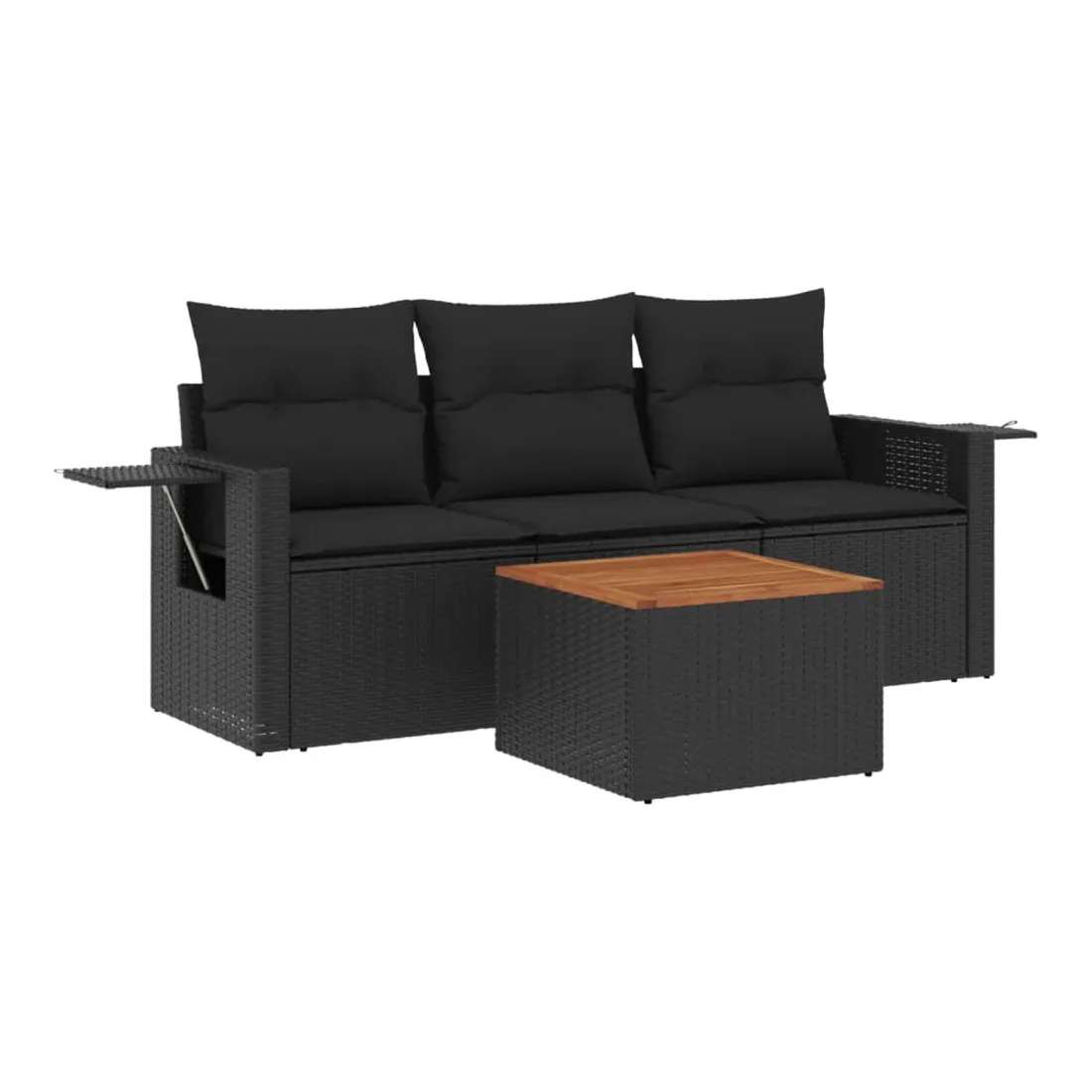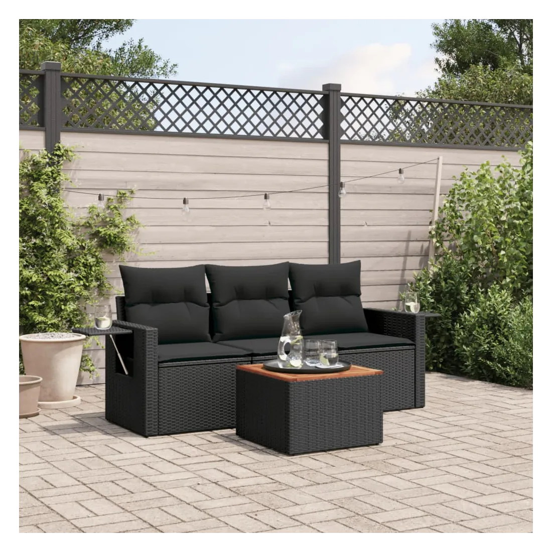 Cet ensemble de canapés de jardin est le complément parfait de votre arrière-cour, terrasse ou patio, offrant un espace confortable et accueillant pour discuter avec la famille et les amis ou simplement se détendre et profiter de l'extérieur. Matériau durable : la résine tressée, également connue sous le nom de poly rotin, est un matériau synthétique solide et nécessitant peu d'entretien qui ressemble au rotin naturel. Il est léger, facile à nettoyer et couramment utilisé pour les meubles d'extérieur en raison de sa durabilité et de ses propriétés de résistance aux intempéries.Fonction de rangement avec sac résistant à l'eau : chaque siège de jardin dispose d'un espace de rangement sous l'assise, complété par un sac résistant à l'eau pour ranger les coussins, les jouets et d'autres objets. Les sacs intérieurs sont dotés d'un couvercle et peuvent être solidement fixés aux sièges à l'aide de bandes auto-agrippantes pour plus de stabilité.Dessus stable et facile à nettoyer : cette table de jardin a un dessus en bois d'acacia robuste, durable et facile à nettoyer avec un chiffon humide.Table d'appoint pratique : ce mobilier d'extérieur comprend des tables d'appoint pliables avec un ressort à gaz sur les accoudoirs, offrant des endroits pratiques pour garder vos essentiels à portée de main.Conception modulaire : cet ensemble de meubles d'extérieur a une conception modulaire, ce qui le rend complètement flexible et facile à déplacer, afin que vous puissiez créer un agencement de meubles d'extérieur personnalisé. Bon à savoir :Pour que vos meubles d'extérieur restent beaux, nous vous recommandons de les protéger avec une housse imperméable.