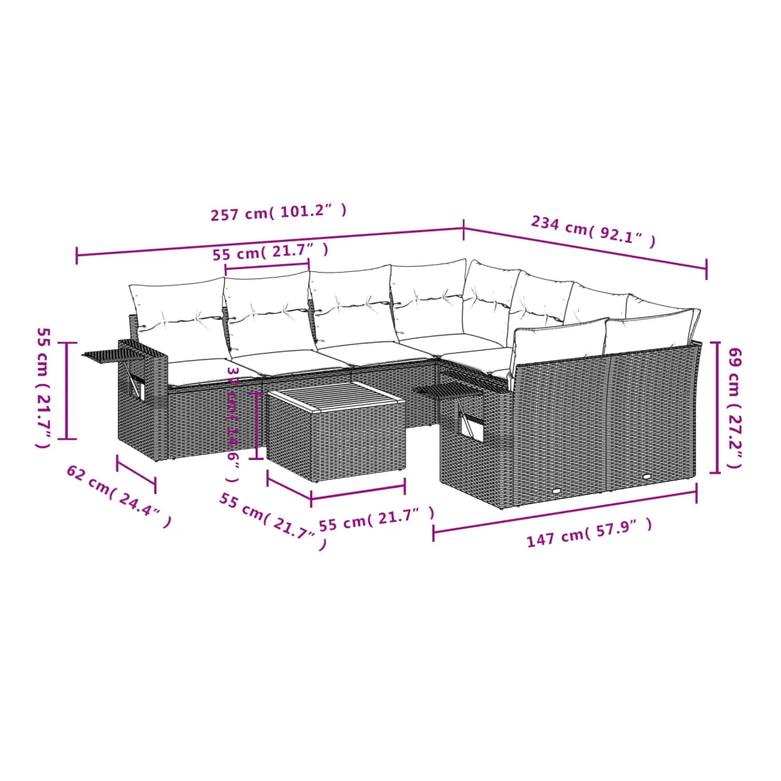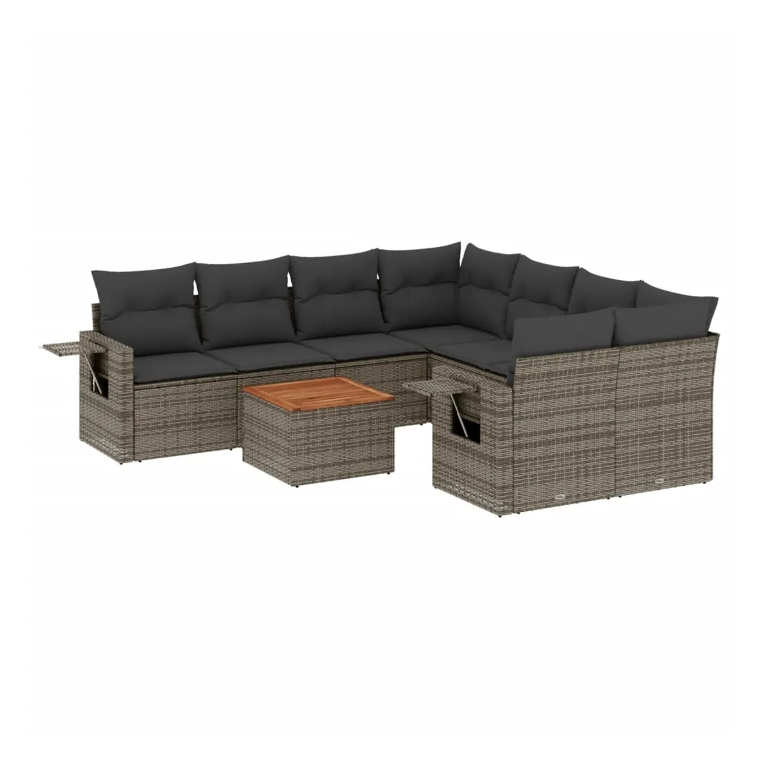 Cet ensemble de canapés de jardin est le complément parfait de votre arrière-cour, terrasse ou patio, offrant un espace confortable et accueillant pour discuter avec la famille et les amis ou simplement se détendre et profiter de l'extérieur. Matériau durable : la résine tressée, également connue sous le nom de poly rotin, est un matériau synthétique solide et nécessitant peu d'entretien qui ressemble au rotin naturel. Il est léger, facile à nettoyer et couramment utilisé pour les meubles d'extérieur en raison de sa durabilité et de ses propriétés de résistance aux intempéries.Fonction de rangement avec sac résistant à l'eau : chaque siège de jardin dispose d'un espace de rangement sous l'assise, complété par un sac résistant à l'eau pour ranger les coussins, les jouets et d'autres objets. Les sacs intérieurs sont dotés d'un couvercle et peuvent être solidement fixés aux sièges à l'aide de bandes auto-agrippantes pour plus de stabilité.Dessus stable et facile à nettoyer : cette table de jardin a un dessus en bois d'acacia robuste, durable et facile à nettoyer avec un chiffon humide.Table d'appoint pratique : ce mobilier d'extérieur comprend des tables d'appoint pliables avec un ressort à gaz sur les accoudoirs, offrant des endroits pratiques pour garder vos essentiels à portée de main.Conception modulaire : cet ensemble de meubles d'extérieur a une conception modulaire, ce qui le rend complètement flexible et facile à déplacer, afin que vous puissiez créer un agencement de meubles d'extérieur personnalisé. Bon à savoir :Pour que vos meubles d'extérieur restent beaux, nous vous recommandons de les protéger avec une housse imperméable.