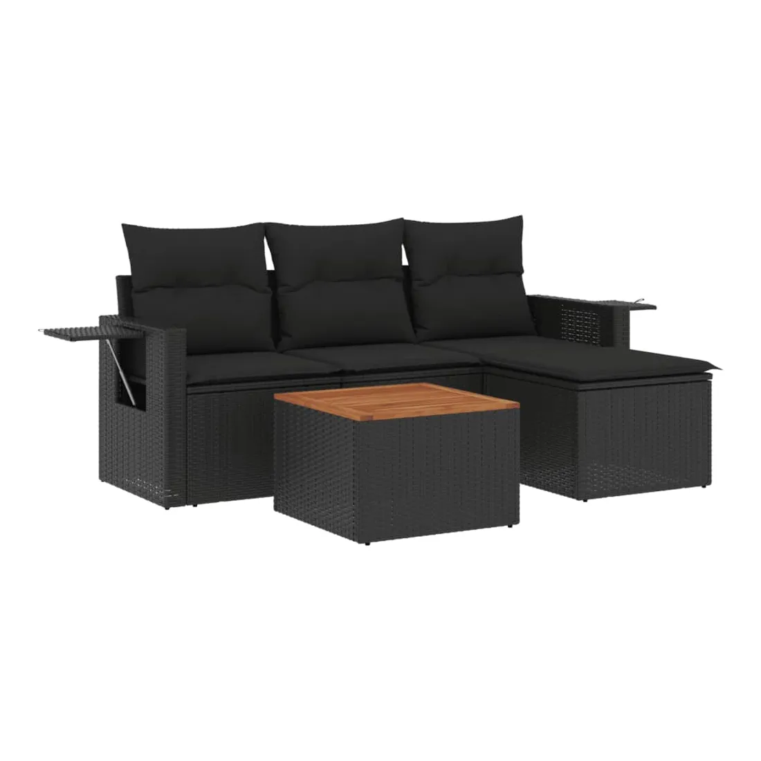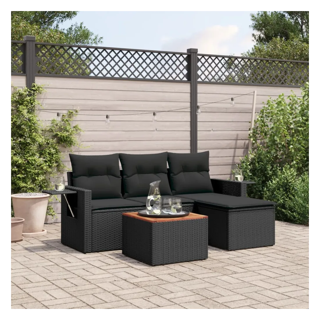 Cet ensemble de canapés de jardin est le complément parfait de votre arrière-cour, terrasse ou patio, offrant un espace confortable et accueillant pour discuter avec la famille et les amis ou simplement se détendre et profiter de l'extérieur. Matériau durable : la résine tressée, également connue sous le nom de poly rotin, est un matériau synthétique solide et nécessitant peu d'entretien qui ressemble au rotin naturel. Il est léger, facile à nettoyer et couramment utilisé pour les meubles d'extérieur en raison de sa durabilité et de ses propriétés de résistance aux intempéries.Fonction de rangement avec sac résistant à l'eau : chaque siège de jardin dispose d'un espace de rangement sous l'assise, complété par un sac résistant à l'eau pour ranger les coussins, les jouets et d'autres objets. Les sacs intérieurs sont dotés d'un couvercle et peuvent être solidement fixés aux sièges à l'aide de bandes auto-agrippantes pour plus de stabilité.Dessus stable et facile à nettoyer : cette table de jardin a un dessus en bois d'acacia robuste, durable et facile à nettoyer avec un chiffon humide.Table d'appoint pratique : ce mobilier d'extérieur comprend des tables d'appoint pliables avec un ressort à gaz sur les accoudoirs, offrant des endroits pratiques pour garder vos essentiels à portée de main.Conception modulaire : cet ensemble de meubles d'extérieur a une conception modulaire, ce qui le rend complètement flexible et facile à déplacer, afin que vous puissiez créer un agencement de meubles d'extérieur personnalisé. Bon à savoir :Pour que vos meubles d'extérieur restent beaux, nous vous recommandons de les protéger avec une housse imperméable.