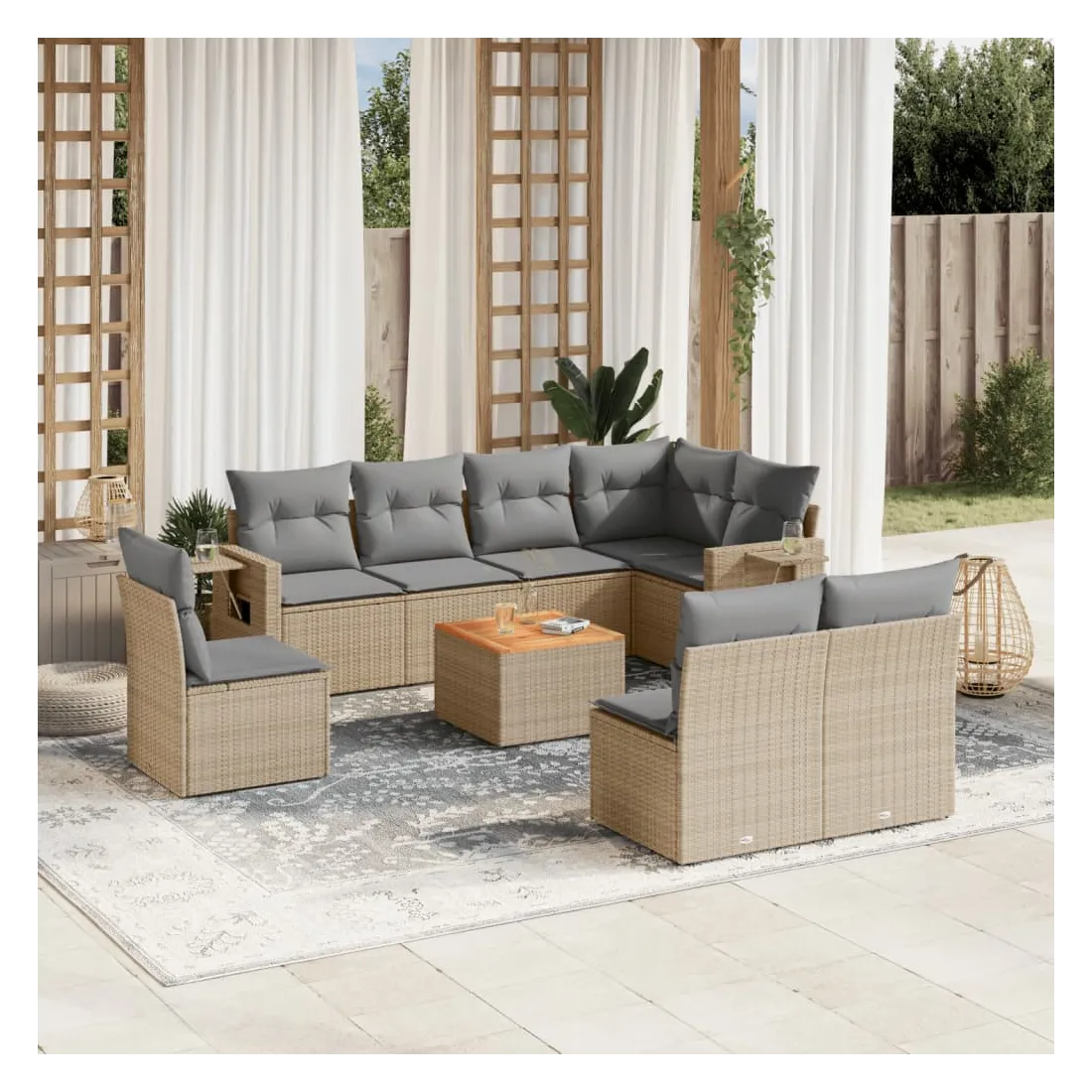 Salon de jardin avec coussins 9pcs mélange beige résine tressée