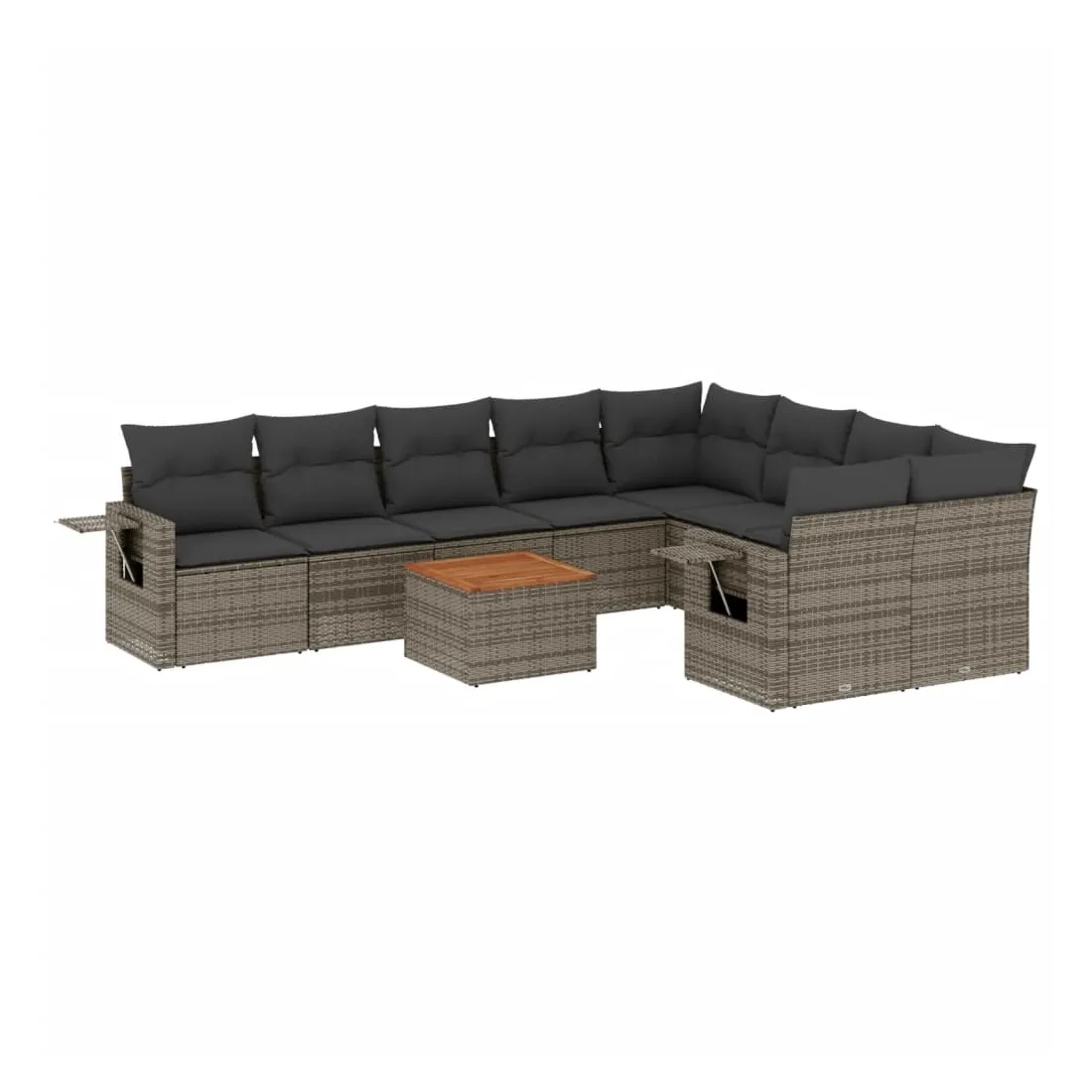Salon de jardin avec coussins 10 pcs gris résine tressée