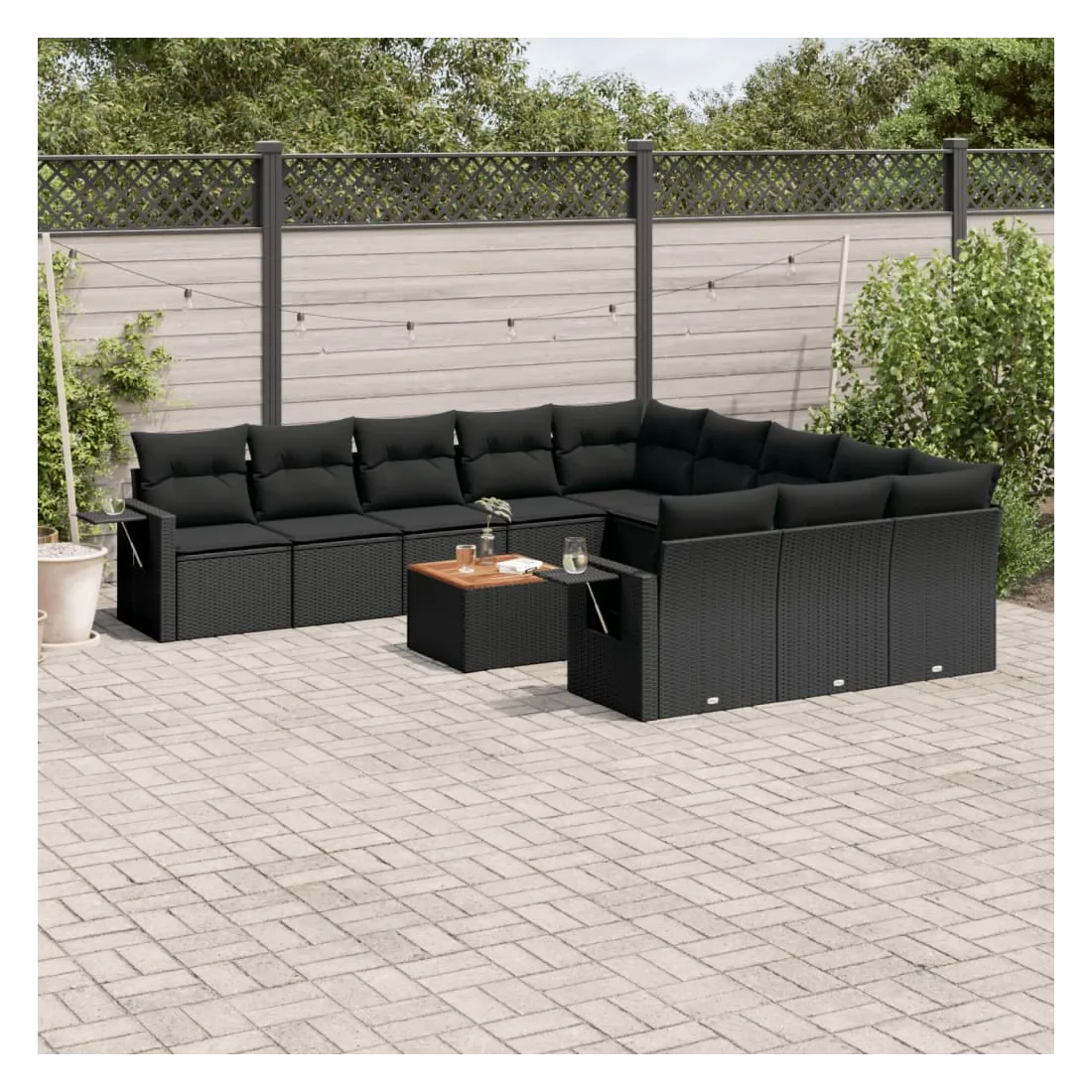 Cet ensemble de canapés de jardin est le complément parfait de votre arrière-cour, terrasse ou patio, offrant un espace confortable et accueillant pour discuter avec la famille et les amis ou simplement se détendre et profiter de l'extérieur. Matériau durable : la résine tressée, également connue sous le nom de poly rotin, est un matériau synthétique solide et nécessitant peu d'entretien qui ressemble au rotin naturel. Il est léger, facile à nettoyer et couramment utilisé pour les meubles d'extérieur en raison de sa durabilité et de ses propriétés de résistance aux intempéries.Fonction de rangement avec sac résistant à l'eau : chaque siège de jardin dispose d'un espace de rangement sous l'assise, complété par un sac résistant à l'eau pour ranger les coussins, les jouets et d'autres objets. Les sacs intérieurs sont dotés d'un couvercle et peuvent être solidement fixés aux sièges à l'aide de bandes auto-agrippantes pour plus de stabilité.Dessus stable et facile à nettoyer : cette table de jardin a un dessus en bois d'acacia robuste, durable et facile à nettoyer avec un chiffon humide.Table d'appoint pratique : ce mobilier d'extérieur comprend des tables d'appoint pliables avec un ressort à gaz sur les accoudoirs, offrant des endroits pratiques pour garder vos essentiels à portée de main.Conception modulaire : cet ensemble de meubles d'extérieur a une conception modulaire, ce qui le rend complètement flexible et facile à déplacer, afin que vous puissiez créer un agencement de meubles d'extérieur personnalisé. Bon à savoir :Pour que vos meubles d'extérieur restent beaux, nous vous recommandons de les protéger avec une housse imperméable.