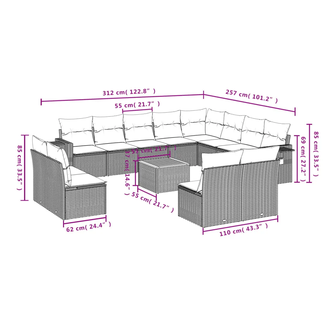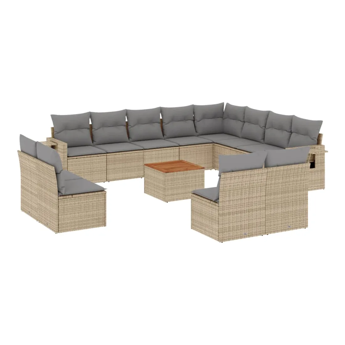 Salon de jardin et coussins 13 pcs mélange beige résine tressée