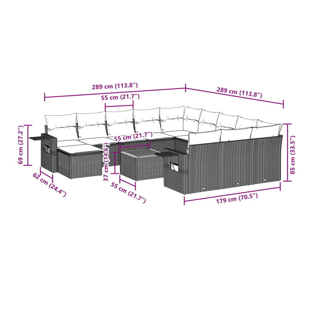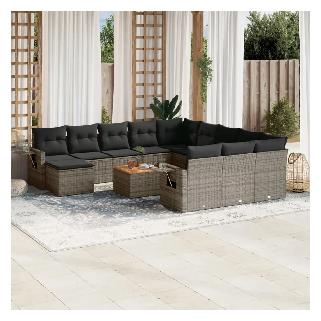Cet ensemble de canapés de jardin est le complément parfait de votre arrière-cour, terrasse ou patio, offrant un espace confortable et accueillant pour discuter avec la famille et les amis ou simplement se détendre et profiter de l'extérieur. Matériau durable : la résine tressée, également connue sous le nom de poly rotin, est un matériau synthétique solide et nécessitant peu d'entretien qui ressemble au rotin naturel. Il est léger, facile à nettoyer et couramment utilisé pour les meubles d'extérieur en raison de sa durabilité et de ses propriétés de résistance aux intempéries.Fonction de rangement avec sac résistant à l'eau : chaque siège de jardin dispose d'un espace de rangement sous l'assise, complété par un sac résistant à l'eau pour ranger les coussins, les jouets et d'autres objets. Les sacs intérieurs sont dotés d'un couvercle et peuvent être solidement fixés aux sièges à l'aide de bandes auto-agrippantes pour plus de stabilité.Dessus stable et facile à nettoyer : cette table de jardin a un dessus en bois d'acacia robuste, durable et facile à nettoyer avec un chiffon humide.Table d'appoint pratique : ce mobilier d'extérieur comprend des tables d'appoint pliables avec un ressort à gaz sur les accoudoirs, offrant des endroits pratiques pour garder vos essentiels à portée de main.Conception modulaire : cet ensemble de meubles d'extérieur a une conception modulaire, ce qui le rend complètement flexible et facile à déplacer, afin que vous puissiez créer un agencement de meubles d'extérieur personnalisé. Bon à savoir :Pour que vos meubles d'extérieur restent beaux, nous vous recommandons de les protéger avec une housse imperméable.