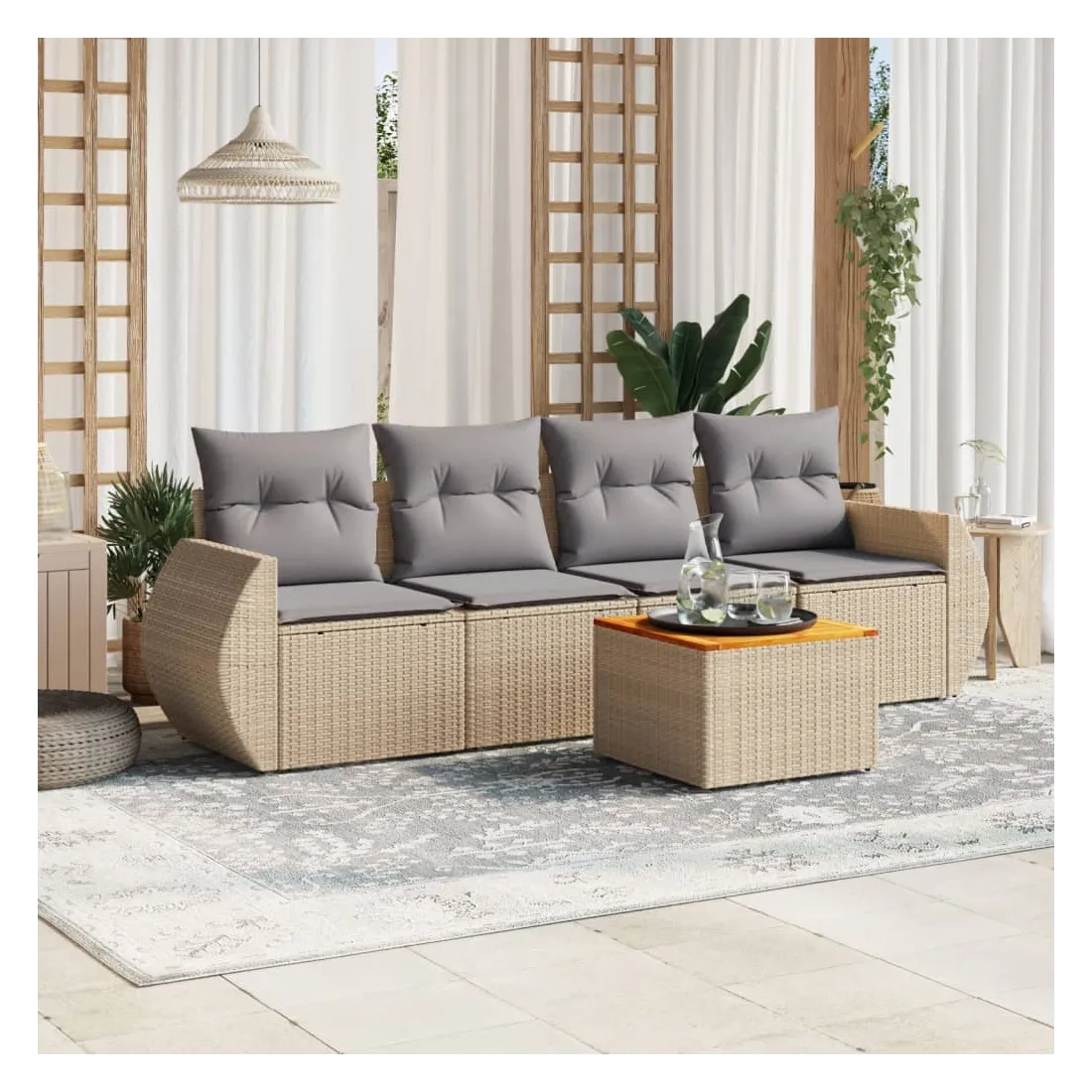 Cet ensemble de canapés de jardin est le complément parfait de votre arrière-cour, terrasse ou patio, offrant un espace confortable et accueillant pour discuter avec la famille et les amis ou simplement se détendre et profiter de l'extérieur. Matériau durable : la résine tressée, également connue sous le nom de poly rotin, est un matériau synthétique solide et nécessitant peu d'entretien qui ressemble au rotin naturel. Il est léger, facile à nettoyer et couramment utilisé pour les meubles d'extérieur en raison de sa durabilité et de ses propriétés de résistance aux intempéries.Dessus stable et facile à nettoyer : cette table de jardin a un dessus en bois d'acacia robuste, durable et facile à nettoyer avec un chiffon humide. Fonction de rangement avec sac résistant à l'eau : chaque siège de jardin dispose d'un espace de rangement sous l'assise, complété par un sac résistant à l'eau pour ranger les coussins, les jouets et d'autres objets. Les sacs intérieurs sont dotés d'un couvercle et peuvent être solidement fixés aux sièges à l'aide de bandes auto-agrippantes pour plus de stabilité.Expérience d'assise confortable : ce mobilier d'extérieur, doté de coussins épais, offre une expérience d'assise confortable.Conception modulaire : cet ensemble de meubles d'extérieur a une conception modulaire, ce qui le rend complètement flexible et facile à déplacer, afin que vous puissiez créer un agencement de meubles d'extérieur personnalisé. Bon à savoir :Pour que vos meubles d'extérieur restent beaux, nous vous recommandons de les protéger avec une housse imperméable.