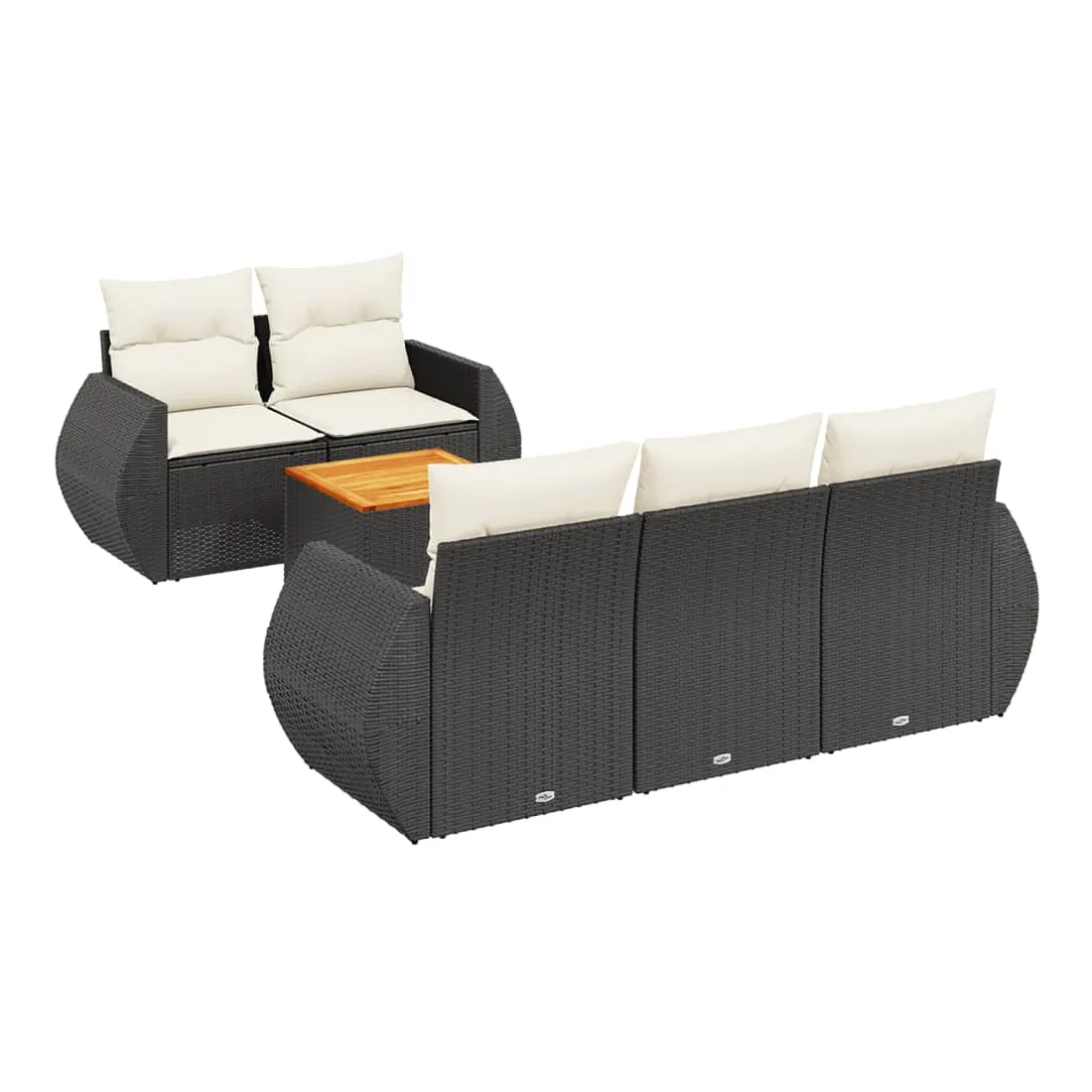 Cet ensemble de canapés de jardin est le complément parfait de votre arrière-cour, terrasse ou patio, offrant un espace confortable et accueillant pour discuter avec la famille et les amis ou simplement se détendre et profiter de l'extérieur. Matériau durable : la résine tressée, également connue sous le nom de poly rotin, est un matériau synthétique solide et nécessitant peu d'entretien qui ressemble au rotin naturel. Il est léger, facile à nettoyer et couramment utilisé pour les meubles d'extérieur en raison de sa durabilité et de ses propriétés de résistance aux intempéries.Dessus stable et facile à nettoyer : cette table de jardin a un dessus en bois d'acacia robuste, durable et facile à nettoyer avec un chiffon humide. Fonction de rangement avec sac résistant à l'eau : chaque siège de jardin dispose d'un espace de rangement sous l'assise, complété par un sac résistant à l'eau pour ranger les coussins, les jouets et d'autres objets. Les sacs intérieurs sont dotés d'un couvercle et peuvent être solidement fixés aux sièges à l'aide de bandes auto-agrippantes pour plus de stabilité.Expérience d'assise confortable : ce mobilier d'extérieur, doté de coussins épais, offre une expérience d'assise confortable.Conception modulaire : cet ensemble de meubles d'extérieur a une conception modulaire, ce qui le rend complètement flexible et facile à déplacer, afin que vous puissiez créer un agencement de meubles d'extérieur personnalisé. Bon à savoir :Pour que vos meubles d'extérieur restent beaux, nous vous recommandons de les protéger avec une housse imperméable.