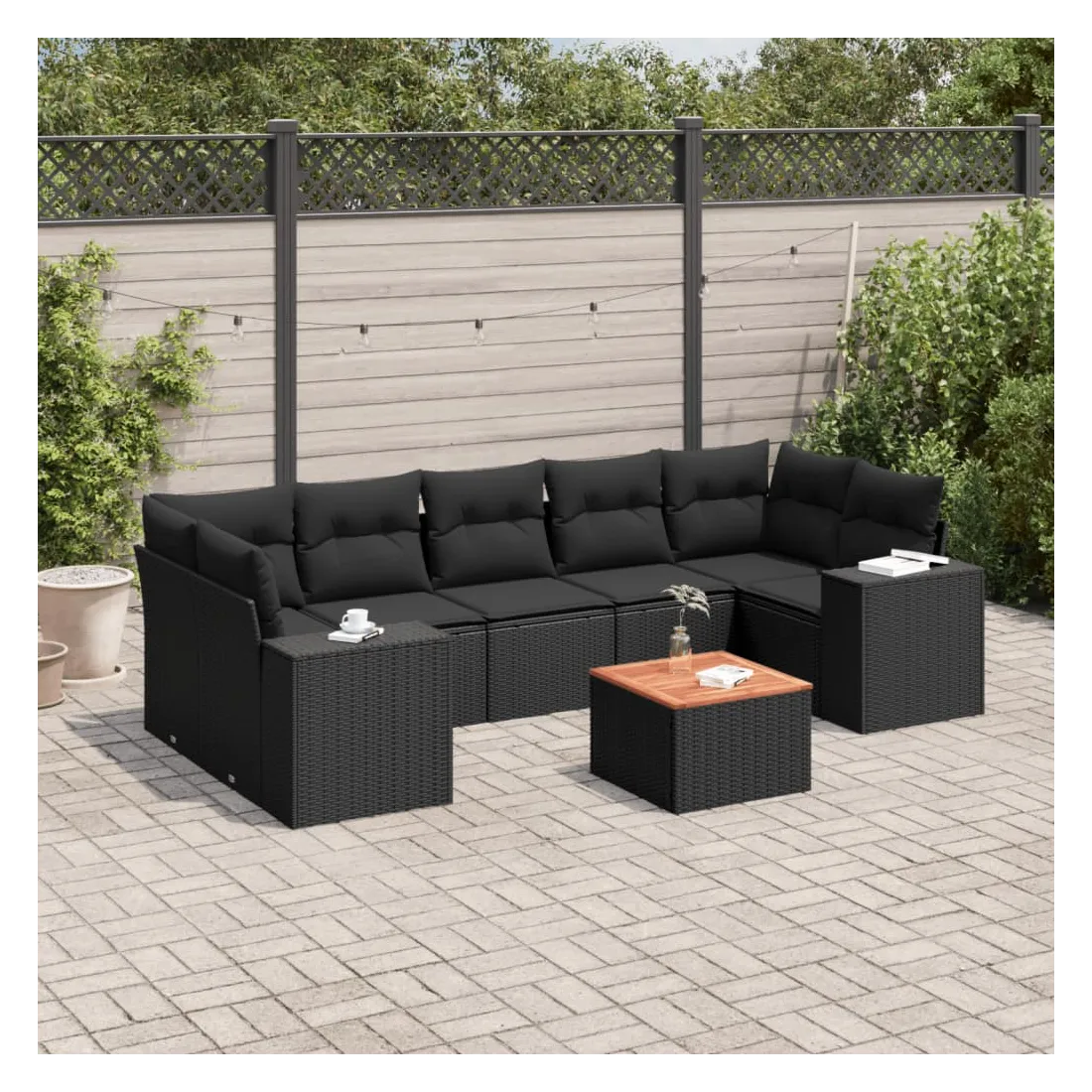 Cet ensemble de canapés de jardin est le complément parfait de votre arrière-cour, terrasse ou patio, offrant un espace confortable et accueillant pour discuter avec la famille et les amis ou simplement se détendre et profiter de l'extérieur. Matériau durable : la résine tressée, également connue sous le nom de poly rotin, est un matériau synthétique solide et nécessitant peu d'entretien qui ressemble au rotin naturel. Il est léger, facile à nettoyer et couramment utilisé pour les meubles d'extérieur en raison de sa durabilité et de ses propriétés de résistance aux intempéries. Fonction de rangement avec sac résistant à l'eau : chaque siège de jardin dispose d'un espace de rangement sous l'assise, complété par un sac résistant à l'eau pour ranger les coussins, les jouets et d'autres objets. Les sacs intérieurs sont dotés d'un couvercle et peuvent être solidement fixés aux sièges à l'aide de bandes auto-agrippantes pour plus de stabilité. Dessus stable et facile à nettoyer : cette table de jardin a un dessus en bois d'acacia robuste, durable et facile à nettoyer avec un chiffon humide. Expérience d'assise confortable : ce mobilier d'extérieur, doté de coussins épais, offre une expérience d'assise confortable. Conception modulaire : cet ensemble de meubles d'extérieur a une conception modulaire, ce qui le rend complètement flexible et facile à déplacer, afin que vous puissiez créer un agencement de meubles d'extérieur personnalisé. Bon à savoir :Pour que vos meubles d'extérieur restent beaux, nous vous recommandons de les protéger avec une housse imperméable.