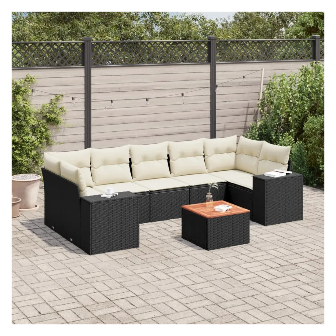 Cet ensemble de canapés de jardin est le complément parfait de votre arrière-cour, terrasse ou patio, offrant un espace confortable et accueillant pour discuter avec la famille et les amis ou simplement se détendre et profiter de l'extérieur. Matériau durable : la résine tressée, également connue sous le nom de poly rotin, est un matériau synthétique solide et nécessitant peu d'entretien qui ressemble au rotin naturel. Il est léger, facile à nettoyer et couramment utilisé pour les meubles d'extérieur en raison de sa durabilité et de ses propriétés de résistance aux intempéries. Fonction de rangement avec sac résistant à l'eau : chaque siège de jardin dispose d'un espace de rangement sous l'assise, complété par un sac résistant à l'eau pour ranger les coussins, les jouets et d'autres objets. Les sacs intérieurs sont dotés d'un couvercle et peuvent être solidement fixés aux sièges à l'aide de bandes auto-agrippantes pour plus de stabilité. Dessus stable et facile à nettoyer : cette table de jardin a un dessus en bois d'acacia robuste, durable et facile à nettoyer avec un chiffon humide. Expérience d'assise confortable : ce mobilier d'extérieur, doté de coussins épais, offre une expérience d'assise confortable. Conception modulaire : cet ensemble de meubles d'extérieur a une conception modulaire, ce qui le rend complètement flexible et facile à déplacer, afin que vous puissiez créer un agencement de meubles d'extérieur personnalisé. Bon à savoir :Pour que vos meubles d'extérieur restent beaux, nous vous recommandons de les protéger avec une housse imperméable.